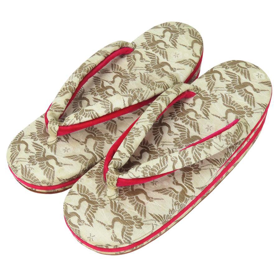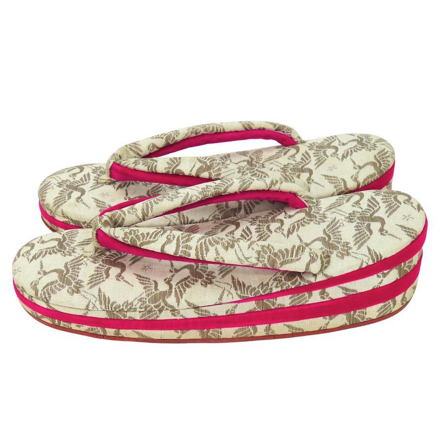 | 品名 | 【中古】 草履 てんぐ 正絹(金銀糸除く) ベロア ベージュ 紅玉 濃いピンク 鶴模様 レディース 女性 |