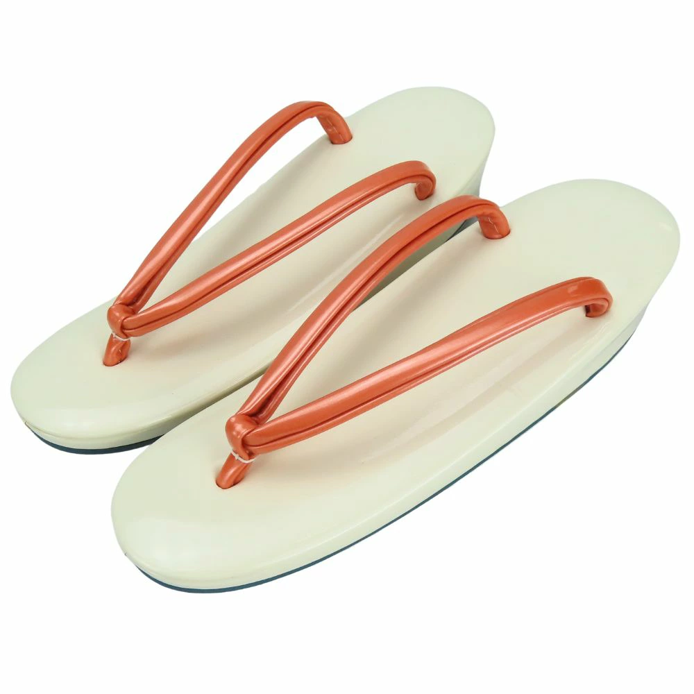 【中古】 草履 未使用保管品 エナメル 合成皮革 アイボリー コーラルピンク 和装 呉服 和服 きもの レディース 女性