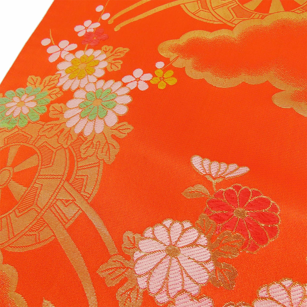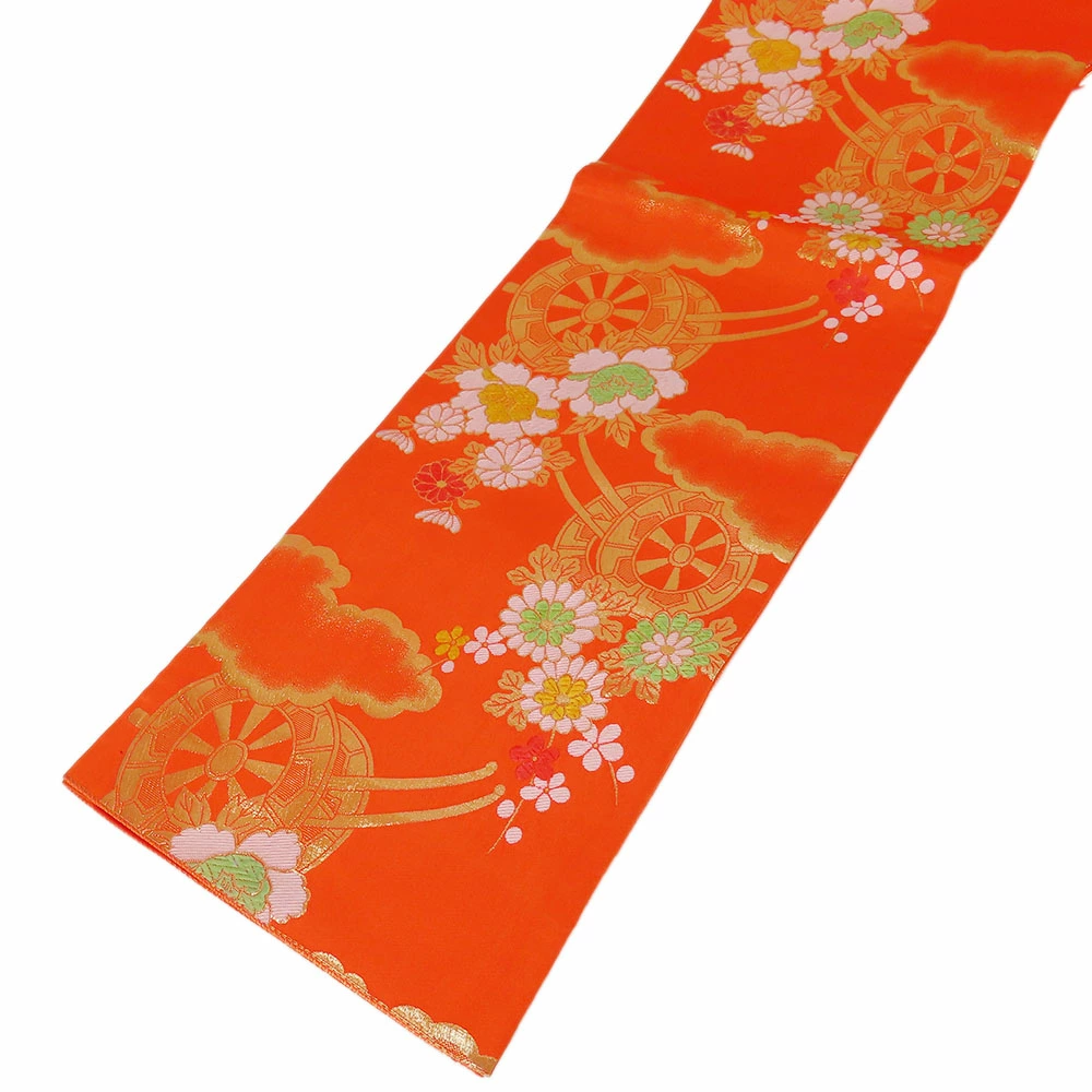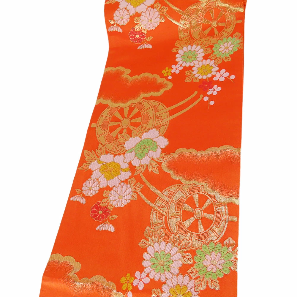 | サイズ | サイズ 全長:約 402cm 幅:約 26.5cm 帯の柄1:花車 重量:約645g |