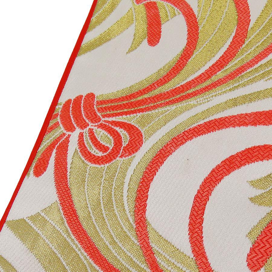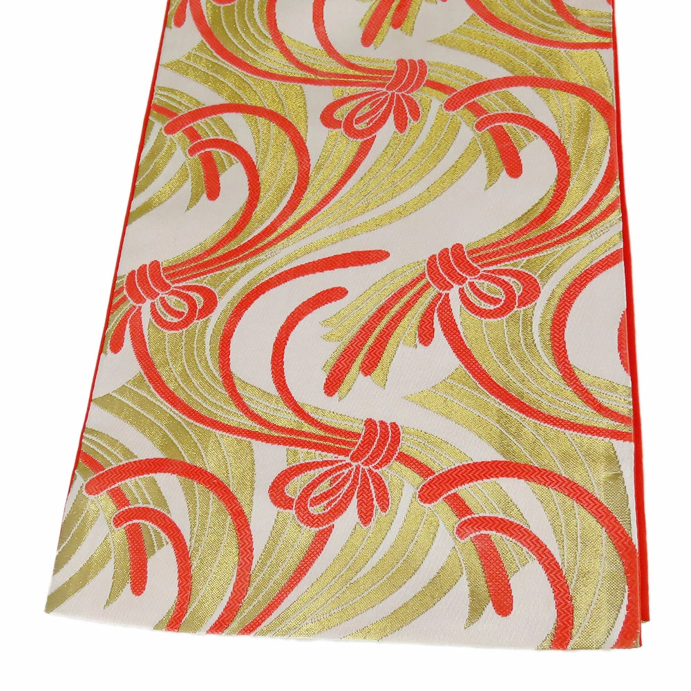 | 品名 | 【中古】 袋帯 七五三用 ポリエステル ホワイト オレンジ ゴールド 女の子 熨斗柄 |