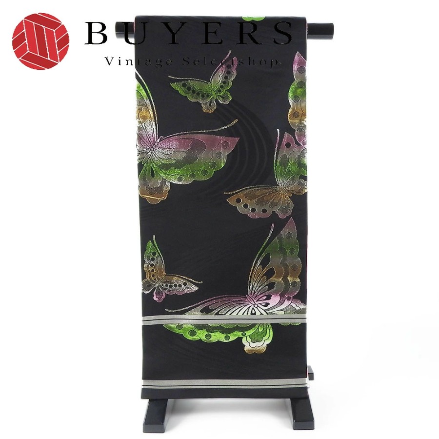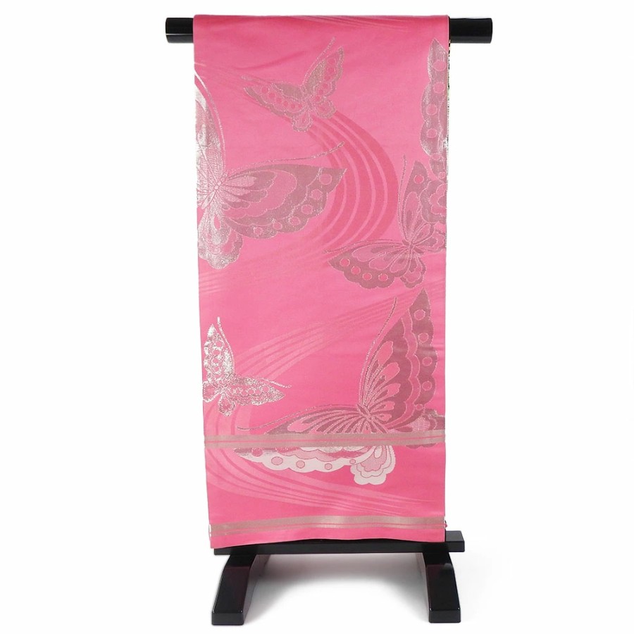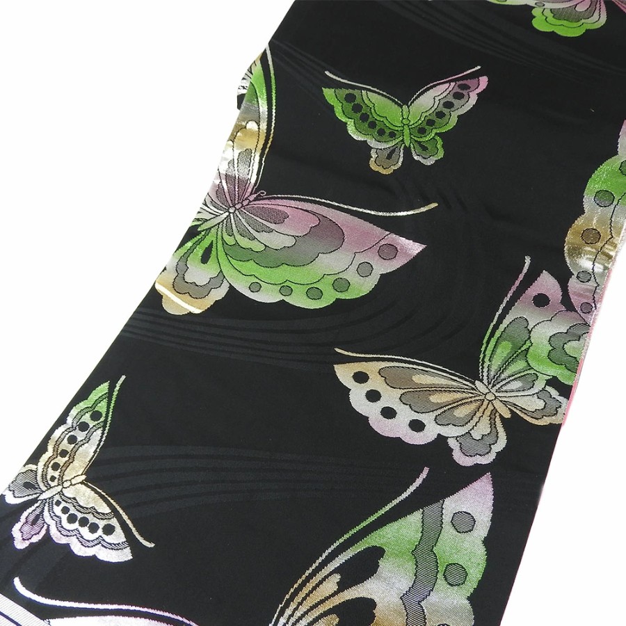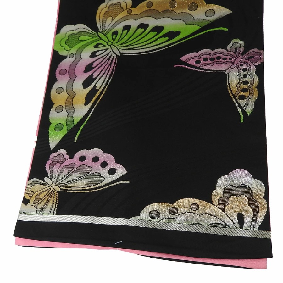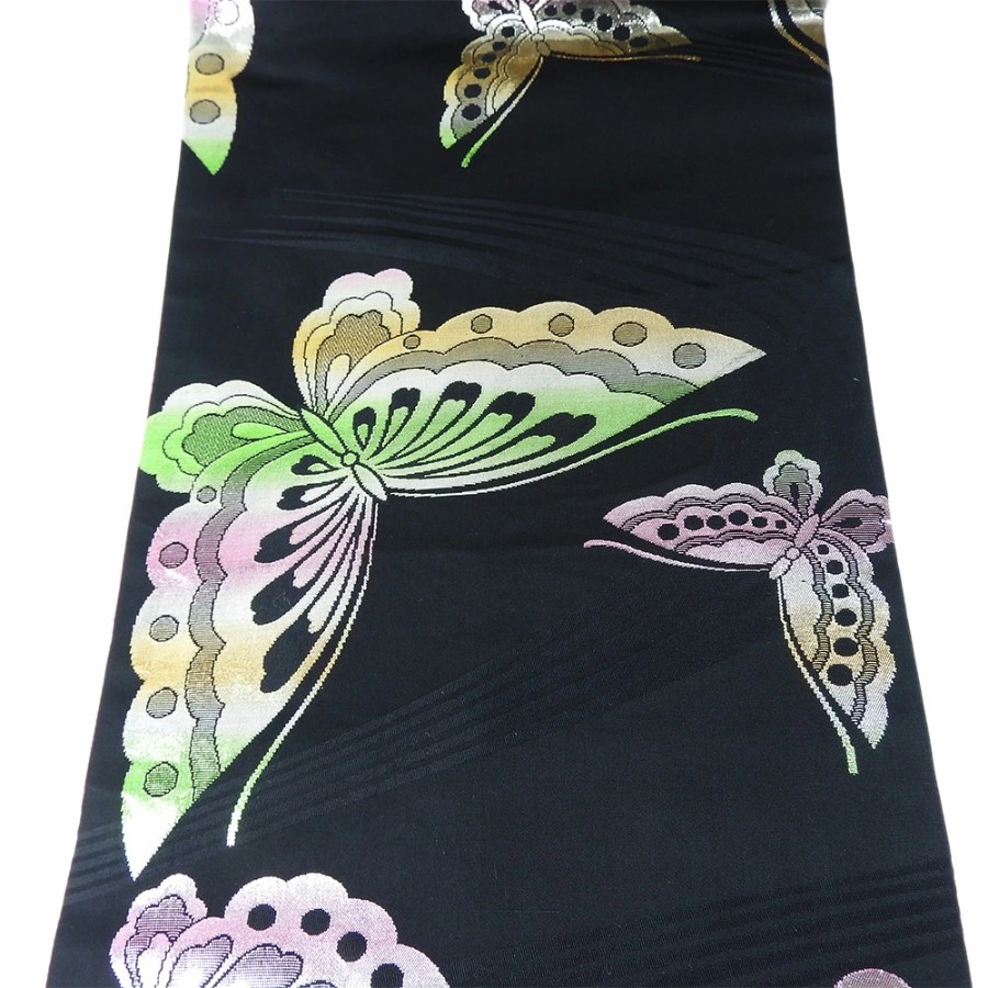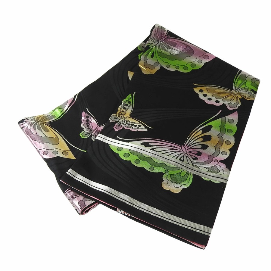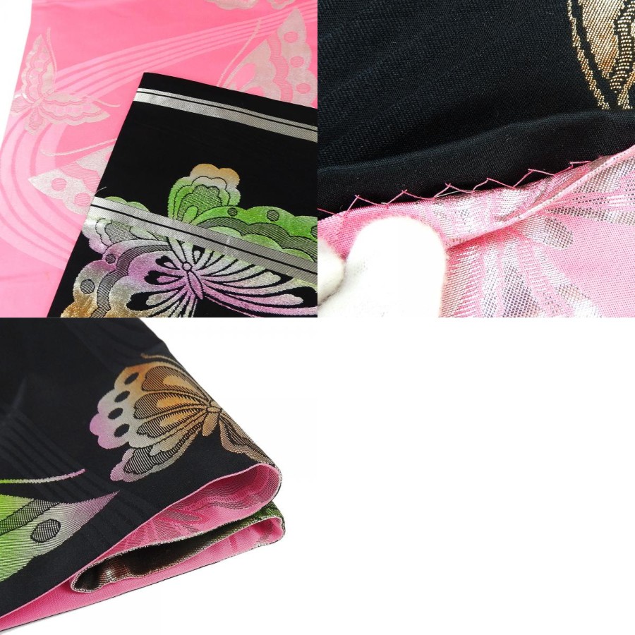 | 品名 | 【中古】 袋帯 踊り用 舞台用 正絹(金銀糸除く) ブラック ピンク 蝶 レディース 女性 |