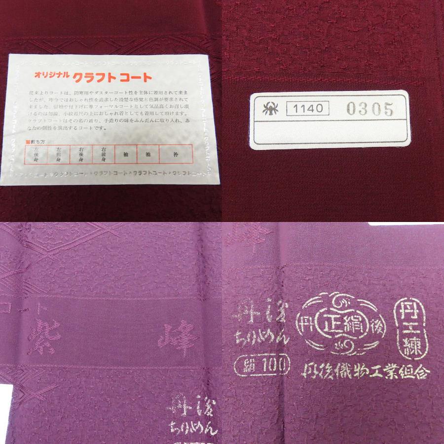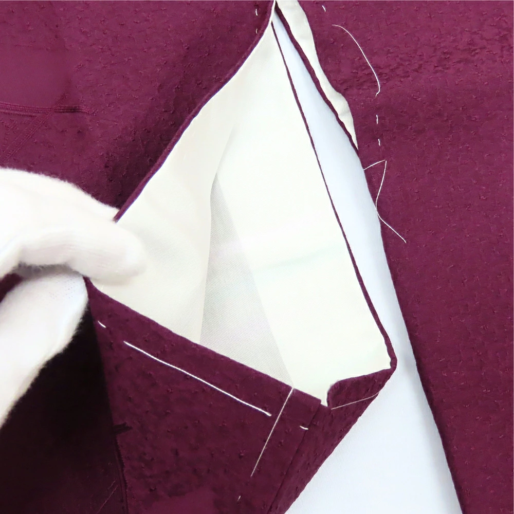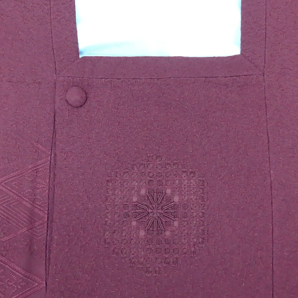 品名【中古】 道行・道中 道行コート しつけ糸あり 正絹 ワインレッド 汕頭刺繍 丹後ちりめん ハギレ付き レディース 女性