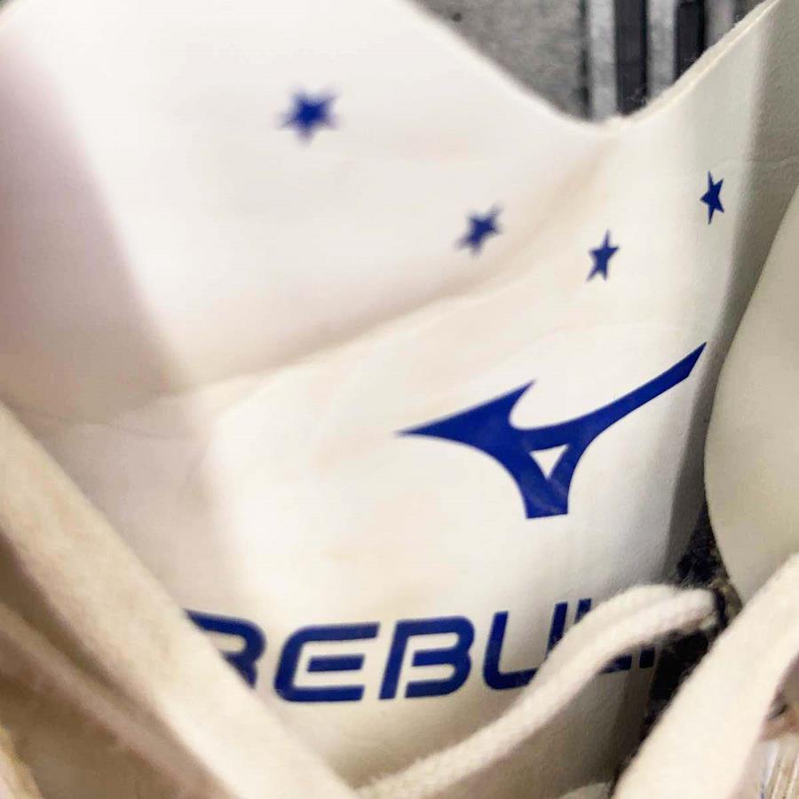 [タイプ] レビュラ CUP PRO REBULA ジュニア[表記サイズ] 24.5cm[対象] キッズ[型番] P1GA227425[カラー] ホワイト/ブルー[状態] ある程度の使用感があり、汚れがみられます。また、つま先や履き口周りに素材の剥がれがみられます。
