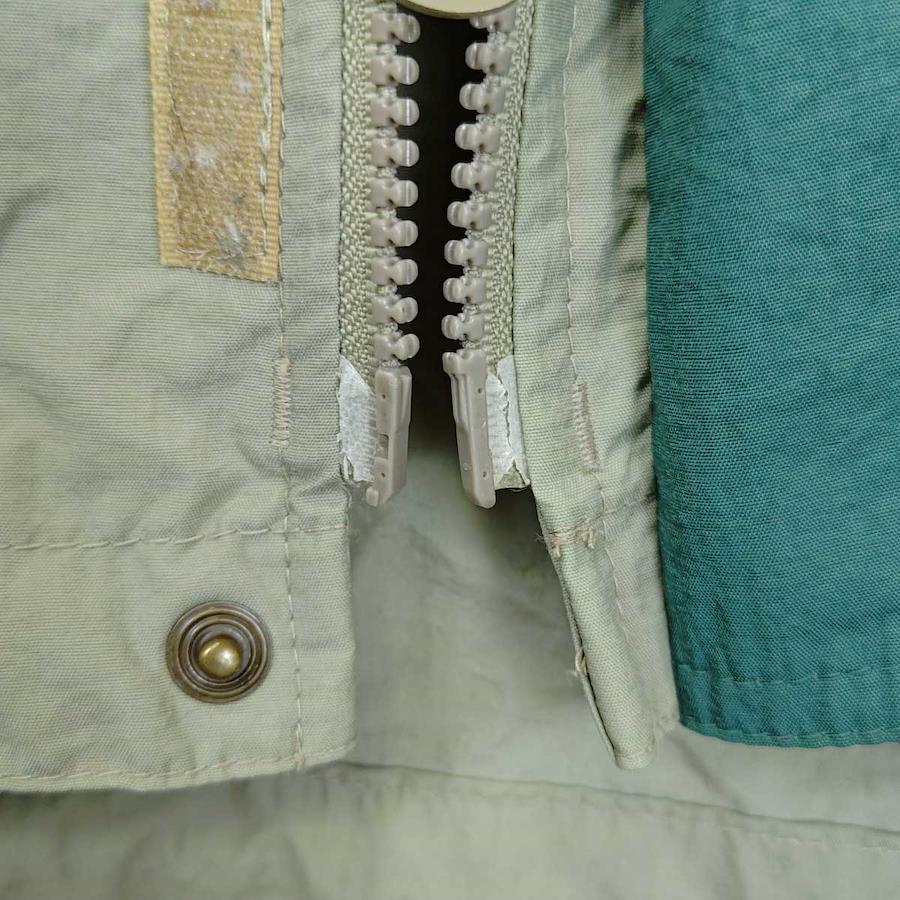 [タイプ] 90s ナイロンジャケット マウンテンパーカー[表記サイズ] M[対象] メンズ[カラー] カーキ[身幅] 約66cm[着丈] 約83cm[裄丈] 約95cm[状態] 使用感や多少の汚れがあり、ファスナー根本のテープにダメージがみられます。