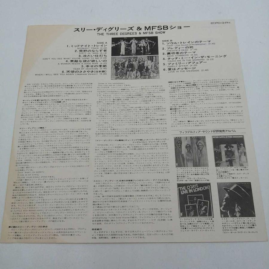 [タイプ] LP THREE DEGREES & MFSB SHOW PHILADELPHIA ECPO-3-PH[状態] 古いものになるため、ジャケットなどに汚れ・ダメージがみられる場合があります。