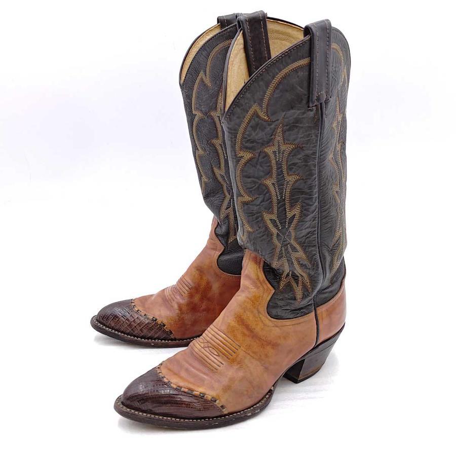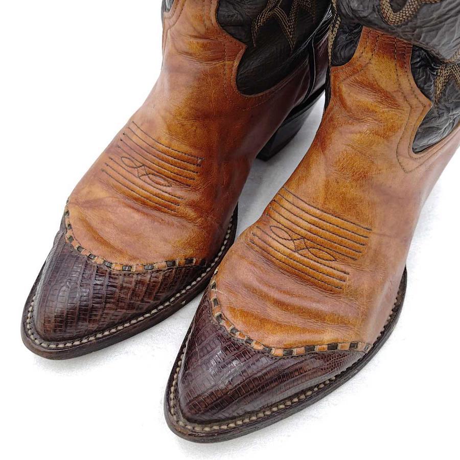 [ブランド] TonyLama トニーラマ[タイプ] ウエスタンブーツ サイズ 4 1/2D (22.5cm)[対象] レディース[サイズ] ヒール高さ約4.6cm、全体高さ約34cm、ふくらはぎ周約33cm[状態] ある程度の使用感があり、汚れや軽い素材の剥がれなどみられます。