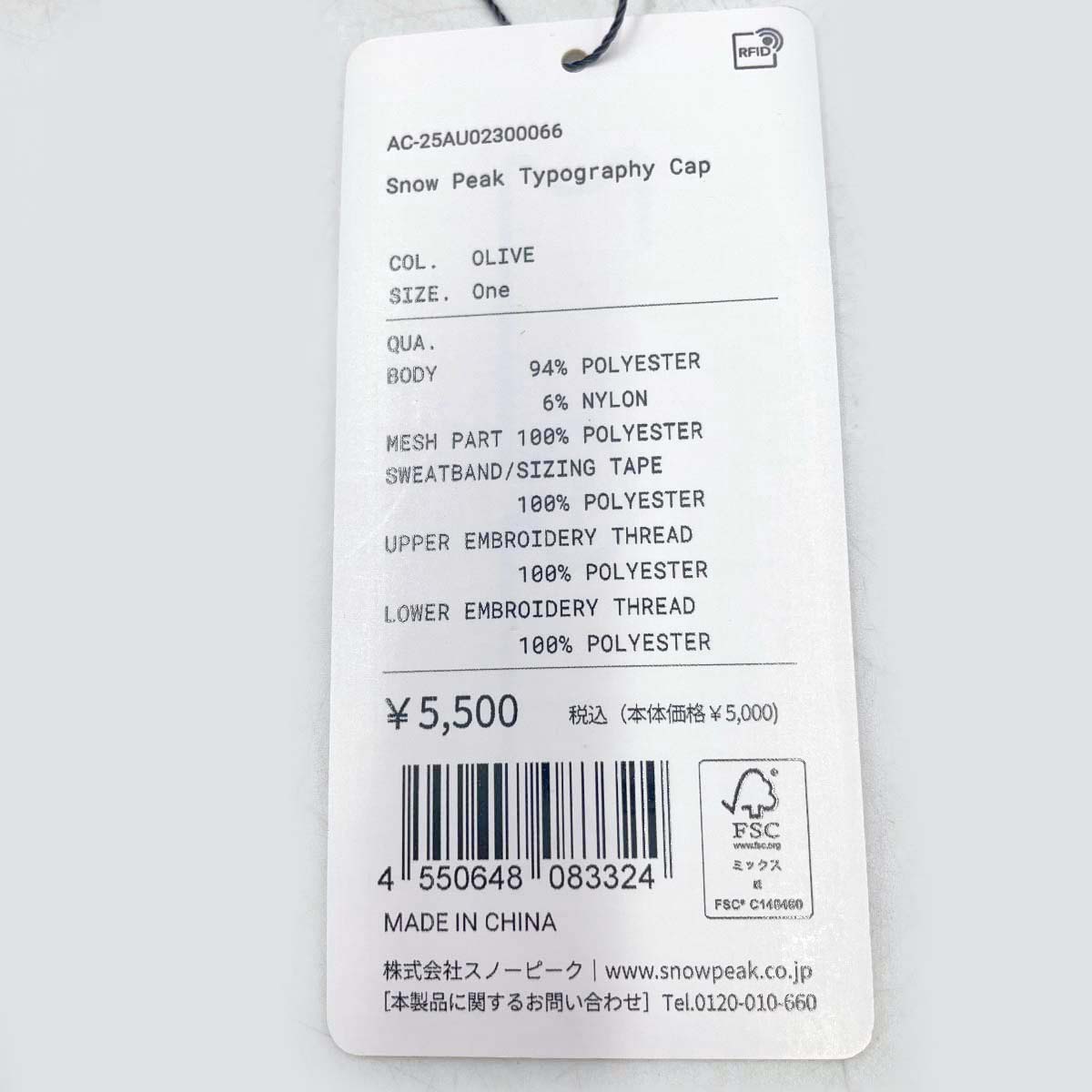 【中古・未使用品】8775 Typography Cap キャップ ONE オリーブ AC-25AU023 ユニセックス 8775 帽子