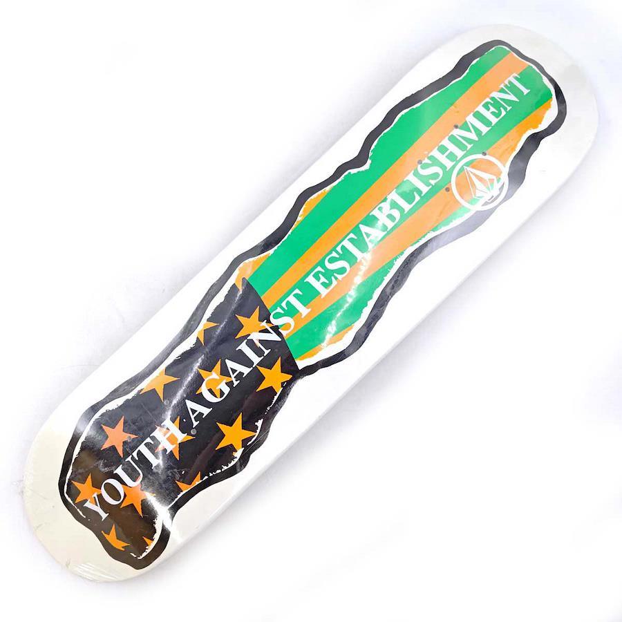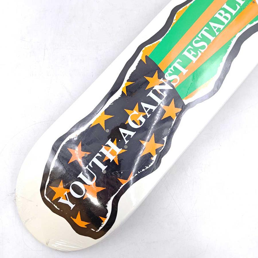 [タイプ] YOUTH AGAINST ESTABLISHMENT スケートボード デッキ[カラー] ホワイト[サイズ] 幅約20cm×全長約80.5cm[状態] 未使用品(ビニール内側に塗装が剥がれた欠片のようなものがみられます。また、ビニールに少し破れがあり、デッキに軽い汚れがみられます。)