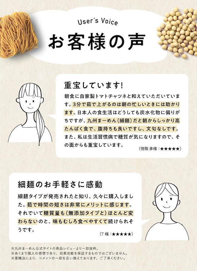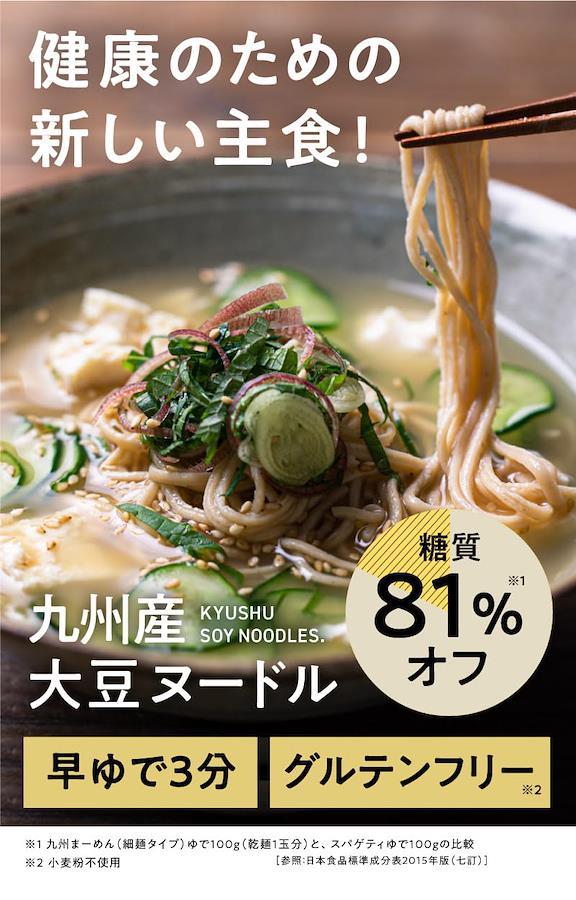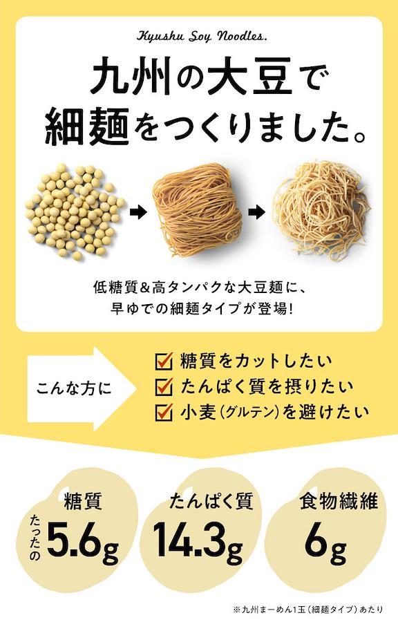 ・九州産大豆ふくゆたかを使用してできた麺です。ゆで時間を短縮し、つるっとした食感に改良した細麺タイプが新登場です。 ・パスタ、うどん、そば、ラーメンなどに置き換えてダイエットに。 ・糖質カット、食物繊維豊富で高たんぱくで食べごたえがあり、腹持ちもいい麺です。 ・1袋3食分、乾麺なので、買い置きしてもかさばらない。