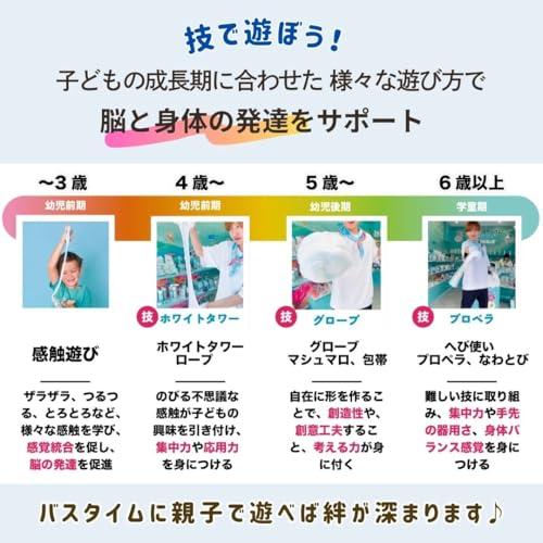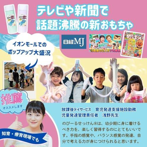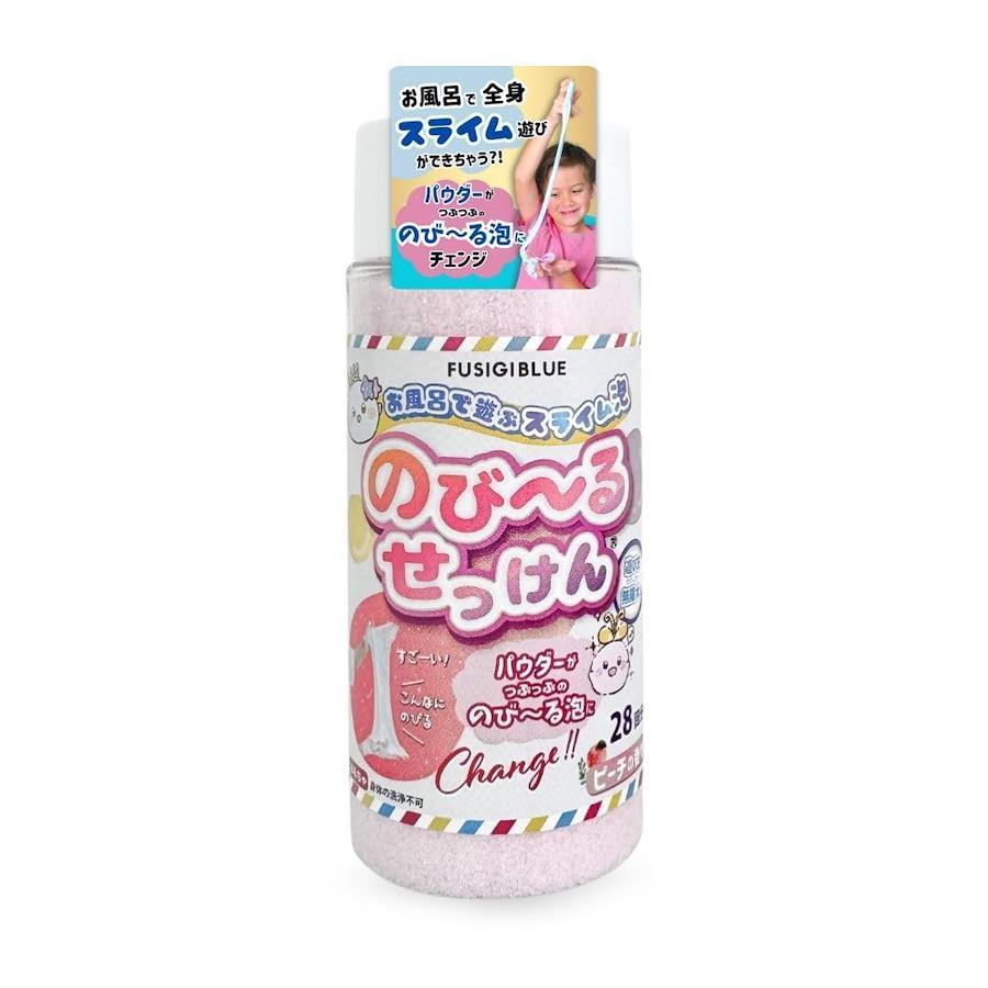 お風呂で楽しく遊びながら、脳と身体の発達を促進する、新発想の知育玩具「子どもの才能 のびーるせっけん」 【製品紹介】 ・未体験!パウダーに水を加えて混ぜると、スライムのように、びよーんとのびる、楽しい泡にチェンジ! ・のびーる泡は、大人も子どもも夢中になる、ザラザラ・つぶつぶ・もちもち感触 ・のびーる泡はとても強力。水を加えすぎなければ、1時間以上連続して遊ぶことができます ・遊ぶだけで脳が育つ!指先は第2の脳。楽しく遊ぶだけで、創造性・集中力・忍耐力・応用力などの知能が高まります ・大人も驚きの本格的な良い香り。リゾートホテルのようなシトラスと、ジューシーなピーチの2ラインナップ ・のびーるせっけんのオリジナルの技で遊べる!ロープのように回したり、アイスや風船など、色んな形が作れます。 2人で伸ばして、どこまでのびるかチャレンジするのも楽しい♪ 【反響】 ・テストマーケティングを行った沖縄・国際通りの直営店舗「南の島のふしぎブルー」では、小学生たちが大熱狂!テスト期間中で既に累計12000個以上を販売。 SNSでも大反響を呼び、現在TikTokでは総再生数200万回以上を記録しています。 【想定される遊びシーン】 ・寒い季節は、お風呂で遊べる楽しいアイテムとして大活躍。お風呂嫌いのお子さんの対策にも活用いただいています ・水遊びのシーズンにも大活躍!お庭でのプール遊びや、川遊びなどで、全身スライム遊び!とても盛り上がるアイテムです 【パパママに嬉しいポイント】 ・片付けがとっても簡単。遊んだ後は水で流せば、お片付け終了 (※排水溝に詰まりませんか?と良くご質問を頂きますが、直営店のお試しでこれまで一度も詰まったことはありませんのでご安心ください。) ・近年「浴育」というキーワードが注目されるなど、バスタイムが親子のコミュニケーション時間として重要性が増しつつあります。 スマホ依存気味の子どもたちも、楽しい感触に夢中になり、パパママは一緒にお風呂で遊びながら、手軽に知育のための時間や家族の豊かなコミュニケーションの時間を作ることができます。 子どもが夢中になれる最適な伸びが得られるよう、安心安全にこだわりながら、1年半にわたり試行錯誤を重ねて開発。 一般的なスライムには中毒の危険性のあるホウ砂が含まれていますが、肌にふれても安心な素材にこだわり、 保湿力の高い砂糖を主成分とし、石鹸成分以外はすべて食品原料にて製造しています。 全成分:スクロース、脂肪酸ナトリウム、増粘剤(食添)、着色料、香料 ※のびーるせっけんは玩具です。石鹸を使用していますが、手や身体の洗浄にはお使いいただけません。 お風呂で楽しく遊びながら、脳と身体の発達を促進する、新発想の知育玩具「子どもの才能 のびーるせっけん」 ・未体験!パウダーに水を加えて混ぜると、スライムのように、びよーんとのびる、楽しい泡にチェンジ! ・のびーる泡は、大人も子どもも夢中になる、ザラザラ・つぶつぶ・もちもち感触 ・のびーる泡はとても強力。水を加えすぎなければ、1時間以上連続して遊ぶことができます ・遊ぶだけで脳が育つ!指先は第2の脳。楽しく遊ぶだけで、創造性・集中力・忍耐力・応用力などの知能が高まります ・大人も驚きの本格的な良い香り。リゾートホテルのようなシトラスと、ジューシーなピーチの2ラインナップ ・のびーるせっけんのオリジナルの技で遊べる!ロープのように回したり、アイスや風船など、色んな形が作れます。 2人で伸ばして、どこまでのびるかチャレンジするのも楽しい♪ ・一般的なスライムに含まれるホウ砂を含まず、食品原料と石鹸成分だけで構成。安心安全にこだわりました。 【反響】 ・テストマーケティングを行った沖縄・国際通りの直営店舗「南の島のふしぎブルー」では、小学生たちが大熱狂!テスト期間中で既に累計12000個以上を販売。 SNSでも大反響を呼び、現在TikTokでは総再生数200万回以上を記録しています。 【想定される遊びシーン】 ・寒い季節は、お風呂で遊べる楽しいアイテムとして大活躍。お風呂嫌いのお子さんの対策にも活用いただいています ・水遊びのシーズンにも大活躍!お庭でのプール遊びや、川遊びなどで、全身スライム遊び!とても盛り上がるアイテムです 【パパママに嬉しいポイント】 ・片付けがとっても簡単。遊んだ後は水で流せば、お片付け終了 (※排水溝に詰まりませんか?と良くご質問を頂きますが、直営店のお試しでこれまで一度も詰まったことはありませんのでご安心ください。) ・近年「浴育」というキーワードが注目されるなど、バスタイムが親子のコミュニケーション時間として重要性が増しつつあります。 スマホ依存気味の子どもたちも、楽しい感触に夢中になり、パパママは一緒にお風呂で遊びながら、手軽に知育のための時間や家族の豊かなコミュニケーションの時間を作ることができます。 一般的なスライムには中毒の危険性のあるホウ砂が含まれていますが、