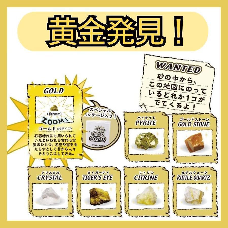 ★砂の中から、宝物を見つける「宝物発見シリーズ」。【ほり出し方】1:砂の下に、新聞紙などを敷く。2:道具をつかって、砂の中からアイテムをみつけ出そう。3:1個出てくる宝物についている砂をブラシではらってね。黄金発見 TKZ-7-01セット内容:アイテム解説書、ブラシ、スコップ、ケース●宝物は全7種類。見つけた宝物を大きく見ることができる虫めがね付きケース付き。宝物の種類:タイガーアイ、ゴールドストーン、クリスタル、ルチルクォーツ、ゴールド、パイライト、シトリン伝説の宝物発見 TKZ-17-01セット内容:アイテム解説書、ブラシ、スコップ●宝物は全10種類。伝説の石や宝物を探す冒険の旅は、子供の心を揺さぶるでしょう。宝物の種類:ダイヤモンドの原石、カーネリアンの原石、タイガーアイの原石、アメジストの原石、ブラッドストーンの原石、クリスタルの原石、ナポレオン1世の王冠、関羽の武器(青龍偃月刀)、アーサー王の剣、ツタンカーメンの黄金のマスクMEGA秘宝伝説 TKZ-20-01セット内容:アイテム解説書、ブラシ、スコップ、ケース●宝物は全11種類。MEGAシリーズは砂の量も多くて掘りごたえ十分。宝物の種類:龍、ドラゴンスレイヤー、栄光の王冠、ソロモンの指輪大サイズ原石 1-クリスタル 2-タイガーアイ 3-カーネリアン 4-ソーダライトのどれか、小サイズ原石4つ(3パターン)水晶発見 TKZ-22-01セット内容:アイテム解説書、ブラシ、スコップ●宝物は全11種類。様々な色や種類の水晶のどれかが入っています。宝物の種類:クリスタル、アメジスト、シトリン、ルチルクォーツ、スモーキークォーツ、ミルキークォーツ、ローズクォーツ、水晶 1-球 2-ドリームクリスタル 3-ポイント 4-ピラミッドのどれか天体発見 TKZ-36-01●今回のテーマは惑星!惑星型のサンドボールを発掘すると中から各惑星をイメージした鉱石(パワーストーン)が1つ出てきます♪発掘できる鉱石は以下の通り♪鉱石(パワーストーンの種類):スモーキークオーツ(水星)、カルサイト(金星)、ソーダライト(地球)、カーネリアン(火星)、タイガーアイ(木星)、フローライト(天王星)、レッドタイガーアイ(太陽)、クリスタル(月)全9種類付属品:サンドボール、説明書、ブラシ、スコップ 内容量:5個(各1個) 対象年齢 :