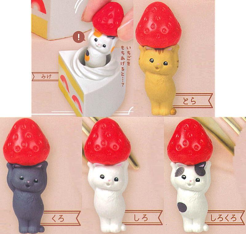 いちごを持って潜むのは・・・ねこちゃん!?全種集めるとホールケーキになるよ♪