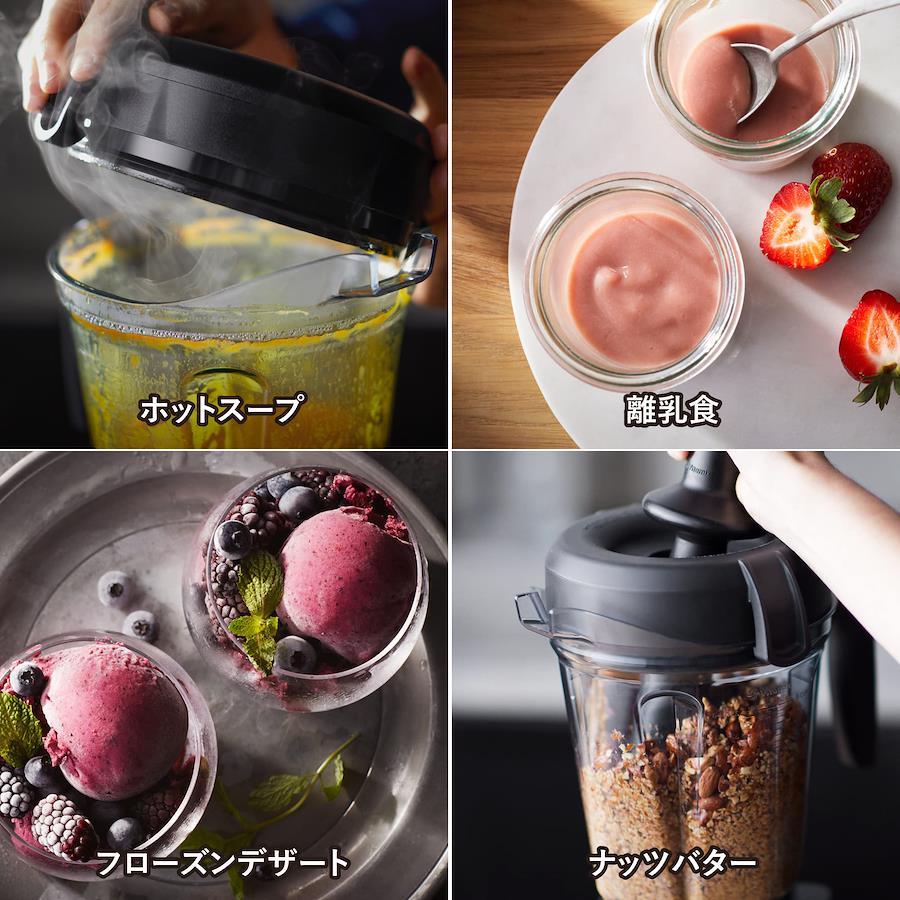 内容:VitamixE310本体ベース、1.4Lコンテナ、ミニタンパー、レシピブック