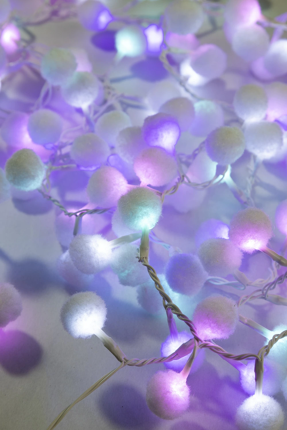 ホワイトウールボールライト(マルチカラー)☆ぜったい可愛いLEDライトをフワフワのウールボールで包み込んだ、めちゃくちゃ可愛いライトです。ライトがぽわっとボールの中で光ってとにかく癒されます。光るガーランドとしてクリスマスツリーの飾りやインテリアとしても優秀ですよ。マルチカラーは白色、ソフトピンク、ソフトパープル、ソフトグリーンのミックスです。※LED100球使用
