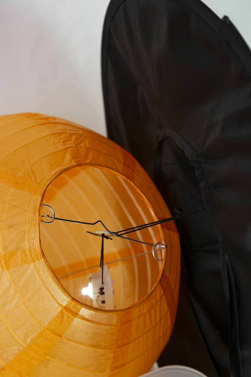 縦幅:約54cm横幅:最大約38cm奥行:最大約38cm材質:ペーパー・スチール・その他吊り下げひも付ボタン電池(LR44)3個必要室内仕様(常灯)