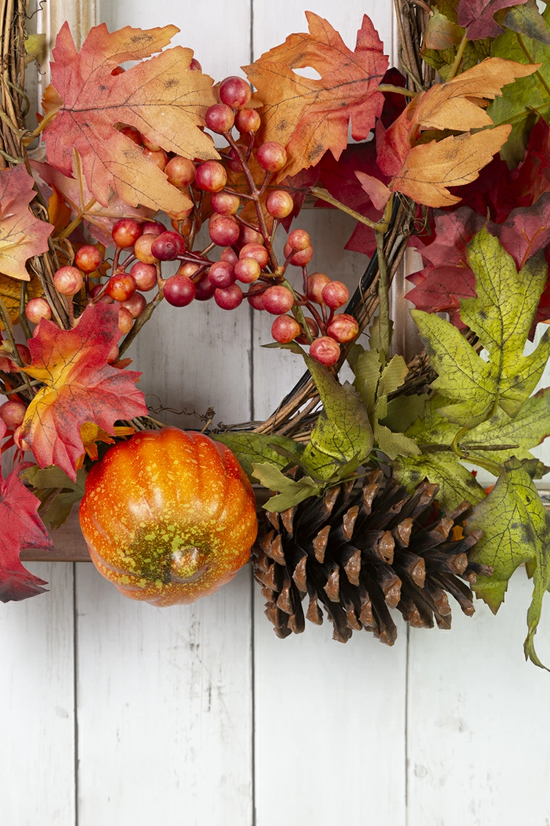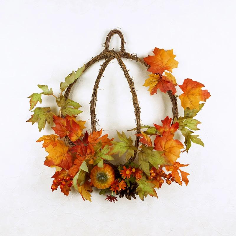 ハーベストパンプキンリース☆実り豊かな秋の装飾を!壁面やドアなどをリースで飾り付けましょう♪実り豊かな秋の装飾をお楽しみください。