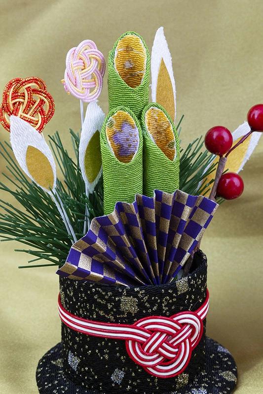 一般名称門松・市松扇原材料名 レーヨン・その他ボックスサイズ高さ: 最大約13cm横幅: 最大約9cm台座直径: 約7cm