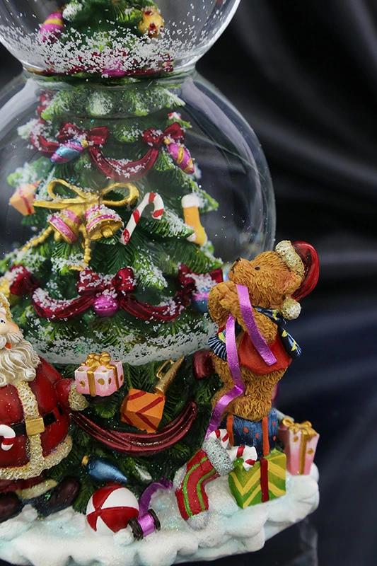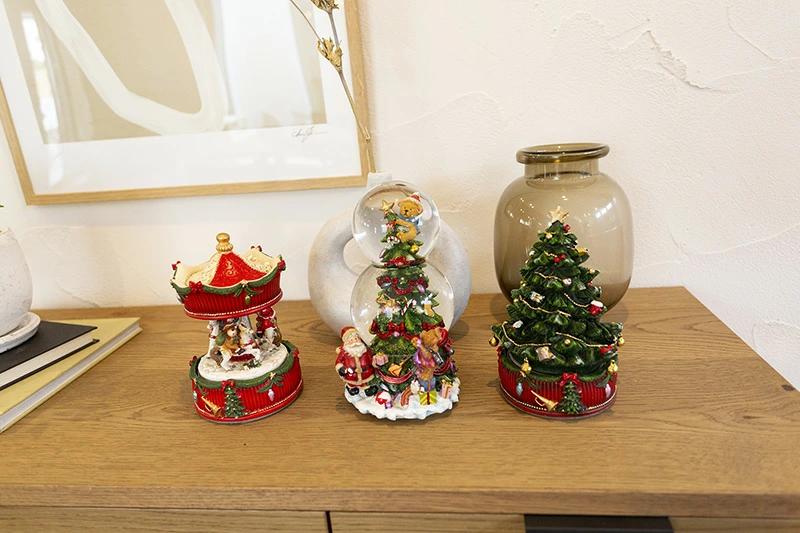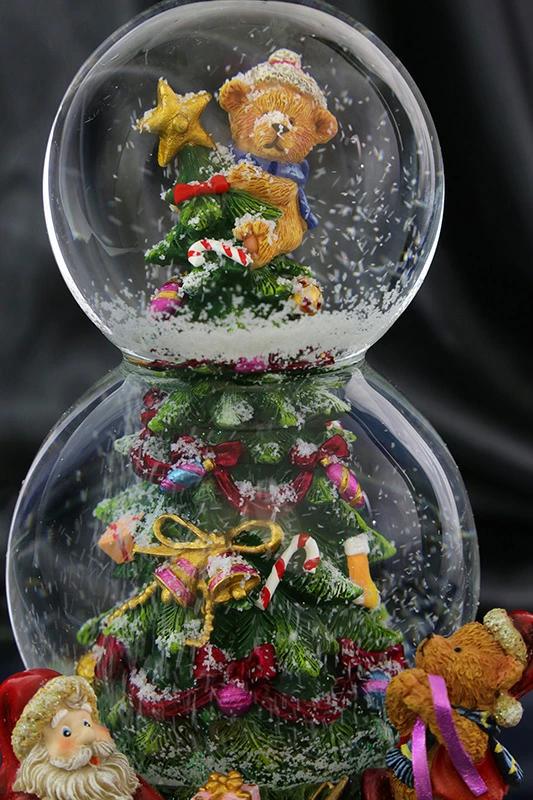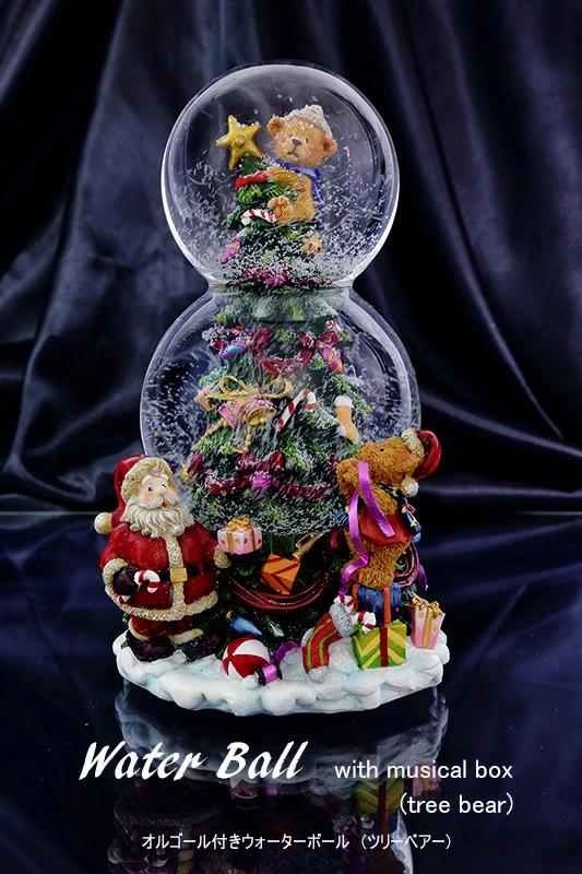 サンタさんのお手伝いをしている弟の小熊が、クリスマスツリーのてっぺんではしゃいでいるのを姉さん熊がちょっと心配そうに見上げている様子を表現した可愛らしくてほのぼのする作品です。にぎやかなディティールにこだわりとてもリッチな雰囲気に仕上げているうえに上下につないだダブルのウォーターボールも珍しい逸品です。