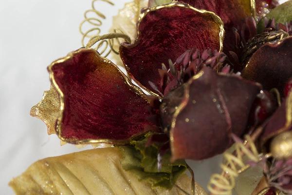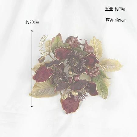 木蓮の仲間のマグノリア(あるいは別名)はとても美しい花で、それをデコラティブにしてさらに美しくアレンジしました。花言葉は威厳、崇高などの他に前途洋々とかあるそうです。リースは縁起物の意味合いもあるので前向きな花言葉がある花はいいですね。