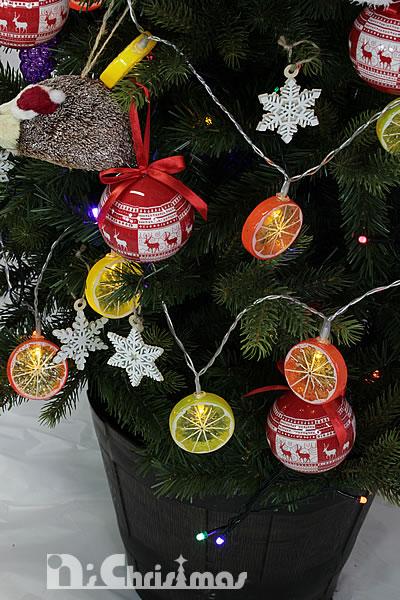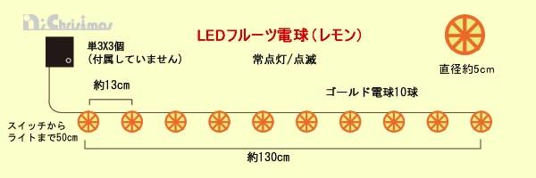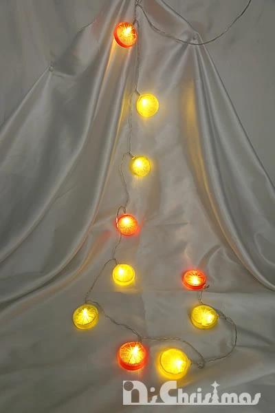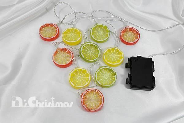 可愛らしい果物をモチーフにした電球です。ツリーに飾ればオーナメントの役割を果たします。また、電池式なのでインテリアとして、好きな場所に飾っていただけます。写真のイメージと実物とは色合いなど、多少異なることがあります。防雨タイプですが、水溜りができるような場所には設置しないでください。
