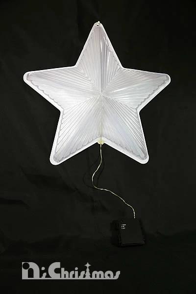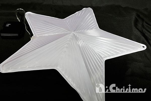 壁掛けタイプの星形LEDモチーフライト。電池式なのに直径50cmと大きく、結構明るいです。スターの中心から外側に、外側から中心へと光ります。屋外での使用も可能で、クリスマスに限らず季節を問わず飾れるアイテムです。店舗インテリアとしてもおすすめです。写真のイメージと実物とは色合いなど、多少異なることがあります。防雨タイプですが、水溜りができるような場所には設置しないでください。