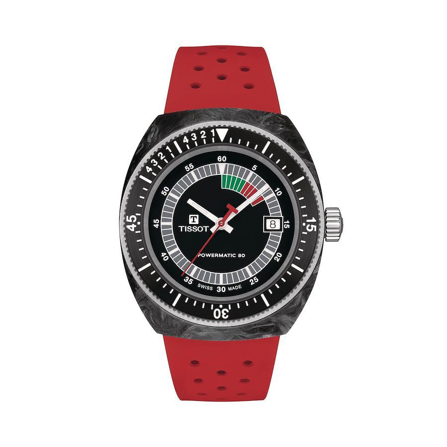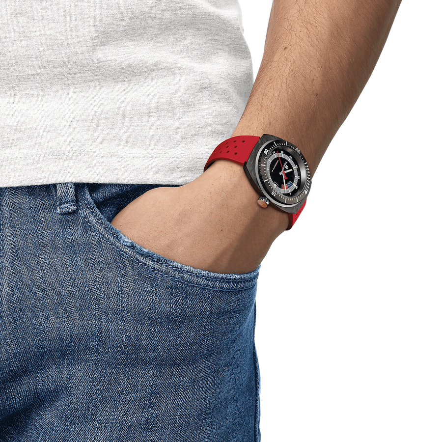 ヴィンテージの魅力と現代のクラフトマンシップが融合した、TISSOTのシデラル。この時計は、幅41mmのフォージドカーボンケースと鮮やかなレッドのストラップが特徴で、アイコニックな1970年代のモデルに敬意を表しています。文字盤にはマルチカラーの夜光塗料が施され、そのユニークな魅力をさらに引き立てています。30気圧(300m)防水:、スーパールミノバ?コーティングのインデックスを備えたシデラルは、トレンドセッターや歴史愛好家のためのステートメントピースです。交換可能なパンチングラバーストラップは、簡単にスタイルを変えることができます。