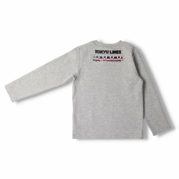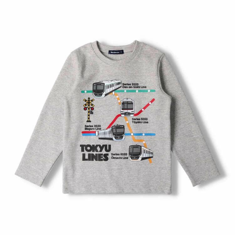 moujonjonのパンツで大人気の伸びもよく柔軟なリップル素材を使った長袖Tシャツ、ロンT。衿ぐりがよく伸び、頭も通しやすい。丁度良い厚みで使いやすい!そんな人気のTシャツに男の子の大人気の東急電鉄の電車のプリント入り。東急田園都市線、東急東横線、東急目黒線、東急大井町線の車両と踏切のプリントに路線図風のデザイン。安心の日本製でギフトやプレゼントにもオススメ!【アイテム】長袖 ロングスリーブ トップス カジュアル お洒落 オシャレ かっこいい かわいい 可愛い 普段着 デイリーウェア お出かけ着 お外遊び着 子ども こども 男児 男の子 ボーイズ キッズ ベビーサイズ トドラーサイズ 幼稚園 保育園 小学校 通園 通学 小学生 2023年秋冬物新作 丸高衣料 鉄道 子鉄 車両 電車 電鉄 トレイン made in Japan メイドインジャパン 国内生産 踏切 グレー 灰色 マスタードイエロー 黄色 ムージョンジョン