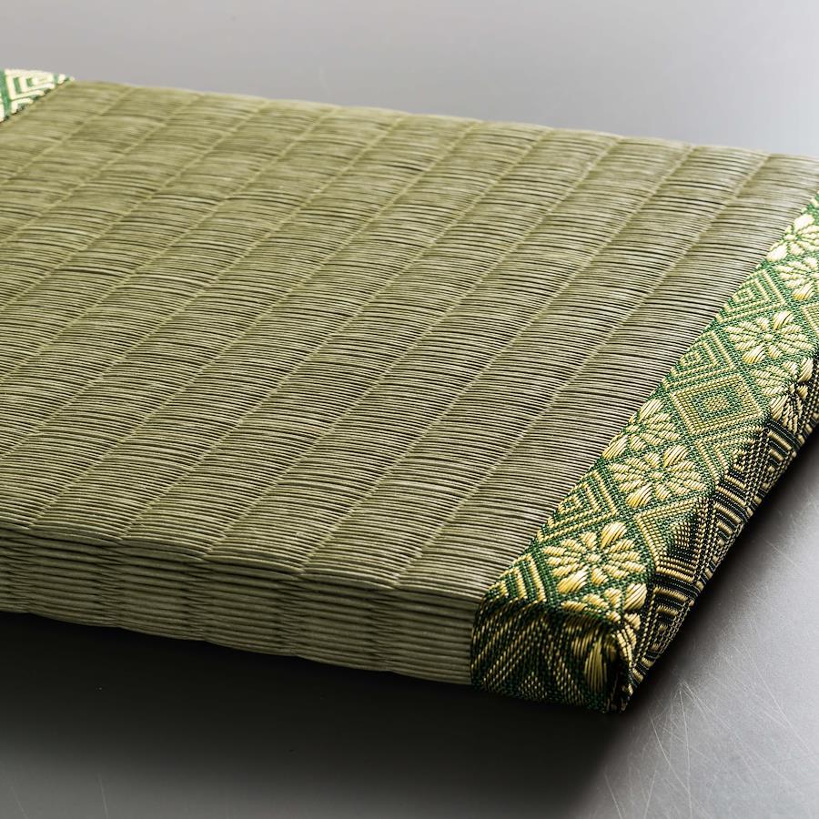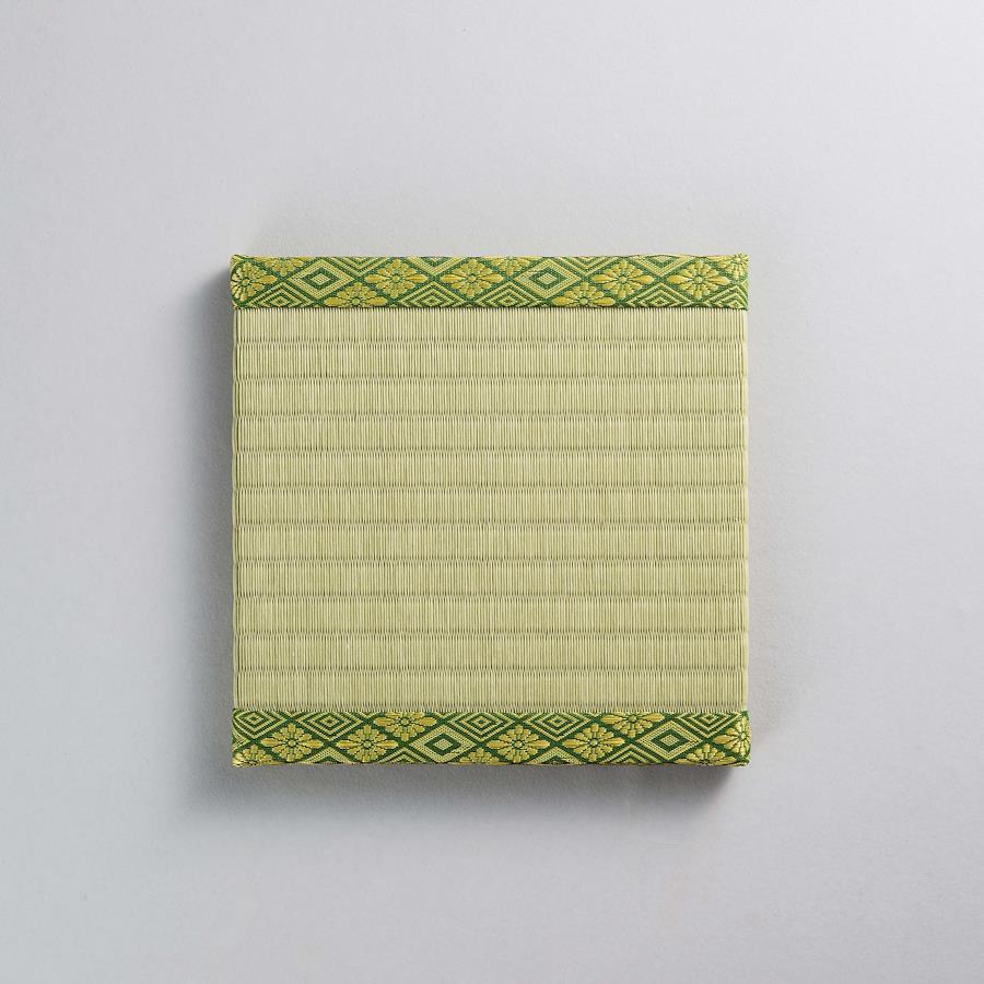 本格的な製法で作られたミニ畳です。碗を載せたり、花器やフィギュアなどの飾り台、スマホや眼鏡置きなどとして、日本の伝統文化を日常的に感じていただける商品です。畳縁を日本の伝統柄でシリーズ化しました。この商品の畳縁≪舛菊≫は、丸い菊の花を舛に見立てた文様で、「長寿」「高貴」「華やかさ」を象徴する意味が込められています。古くから日本で親しまれてきた伝統柄の中でも、特に縁起が良いとされる吉祥文様です。(サイズ)約200㎜×200㎜×15㎜