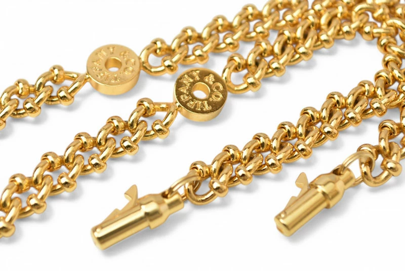 | 商品説明 | ティファニーのヴィンテージバッグに付属していた、高級感溢れるオールゴールドカラーの交換用チェーンストラップです。 お探しの方、必見です!斜め掛け(クロスボディ)可能 等間隔に配置されたロゴ刻印入りのステーションパーツが、ティファニーらしい気品を感じさせます。2重にして短めのハンドストラップにアレンジするなど、アイデア次第で幅広くお使いいただけます。 |