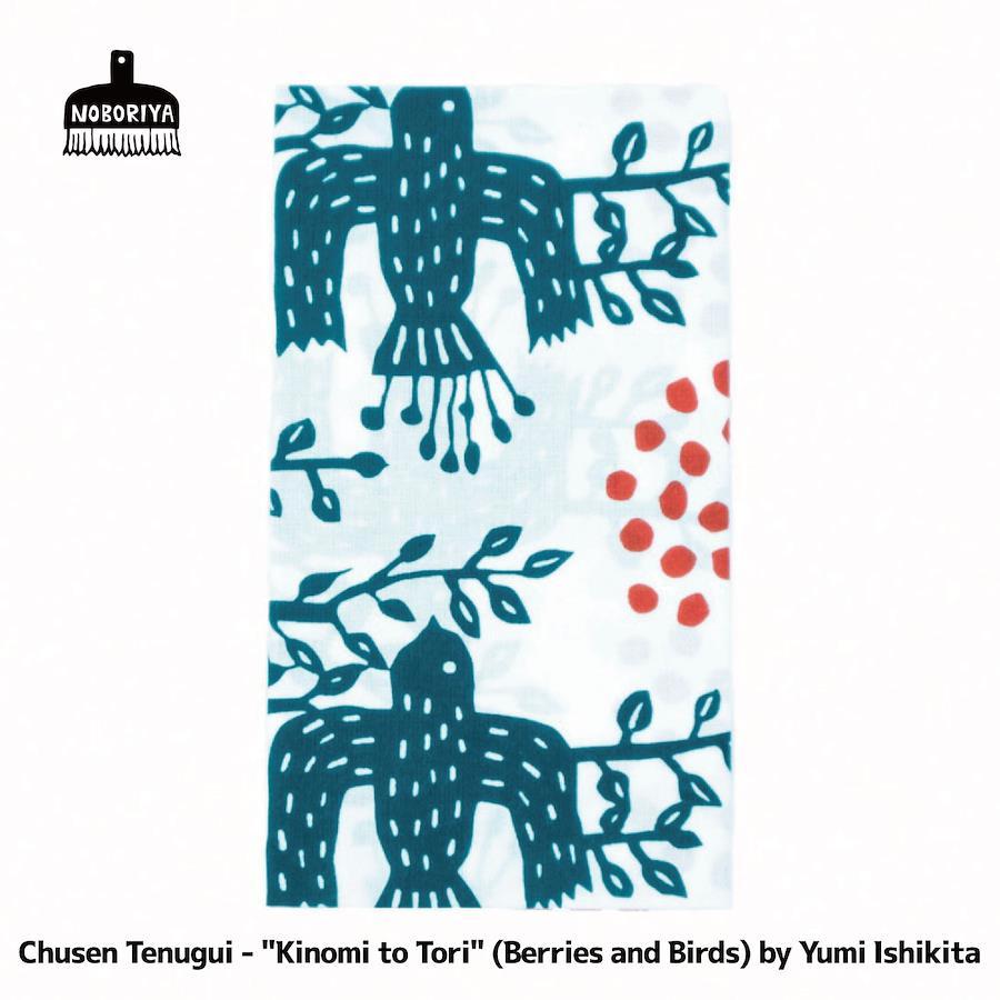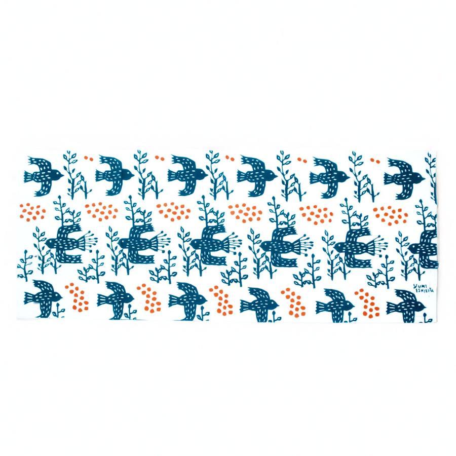 デザイン:石北有美/染色:浜松の注染工房木の実や鳥をモチーフにした、穏やかでどこか懐かしい風景を感じさせる注染手ぬぐいです。