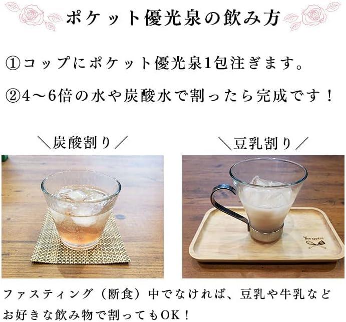 酵素ドリンク 優光泉 ザクローズには女性のコンディションサポート、美容・健康作用のある希少な素材を使用しています。 原材料はすべて九州佐賀県産の国産です。安定剤・保存料・着色料・香料・人工甘味料は無添加です。 1食あたり原液40ml(2袋)を目安に3~4倍の水やお湯などで割ってお召し上がりください。原液そのままでもお召し上がりいただけます。 注目のフルーツ ザクロ 栄養豊富なスーパーフードのひとつ「ザクロ」。 女性にうれしい成分が豊富に含まれることから、古くから「女性の果実」として食べられてきたそうです。 ザクロには、女性の身体に働きかけ、コンディションを整える働きを持つ植物性エストロゲンが豊富に含まれています。 愛と美の象徴 バラ 古くから女性たちの美容法にも用いられたバラ。もっとも美しい花とされ「花の女王」とも呼ばれています。 バラは、ザクロの約8倍ものエストロゲンを含有しており、体に有用なポリフェノールやビタミンA、ビタミンCなど、女性に嬉しい成分の宝庫です。 ファスティング中の置き換えドリンクとしてお召し上がり頂くことで食事が気にならなくなるだけでなく、断食中に不足しがちなビタミン、ミネラルなどの嬉しい栄養素も含まれています。