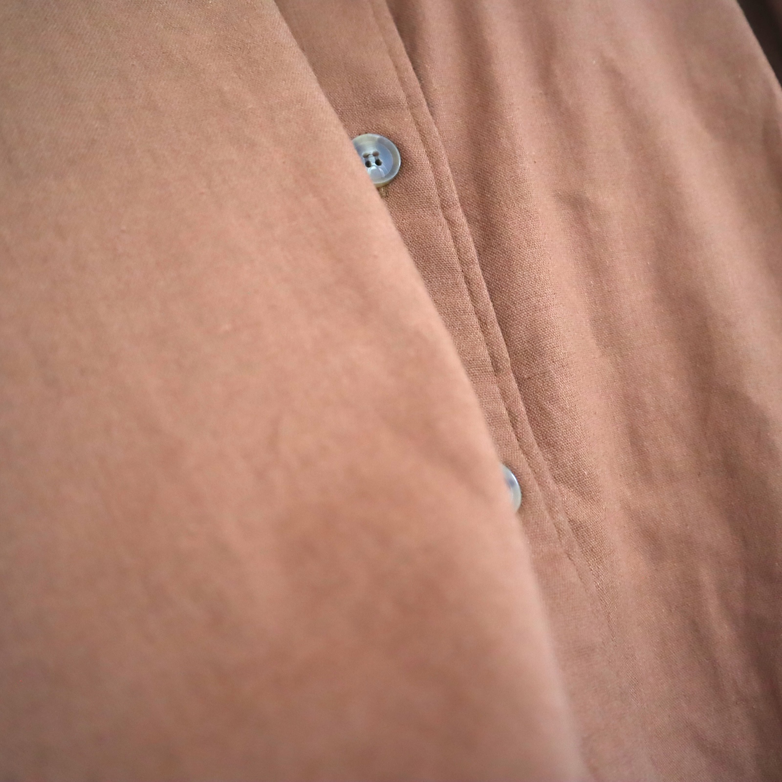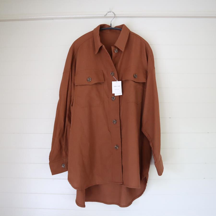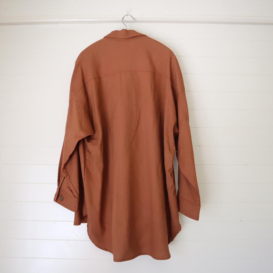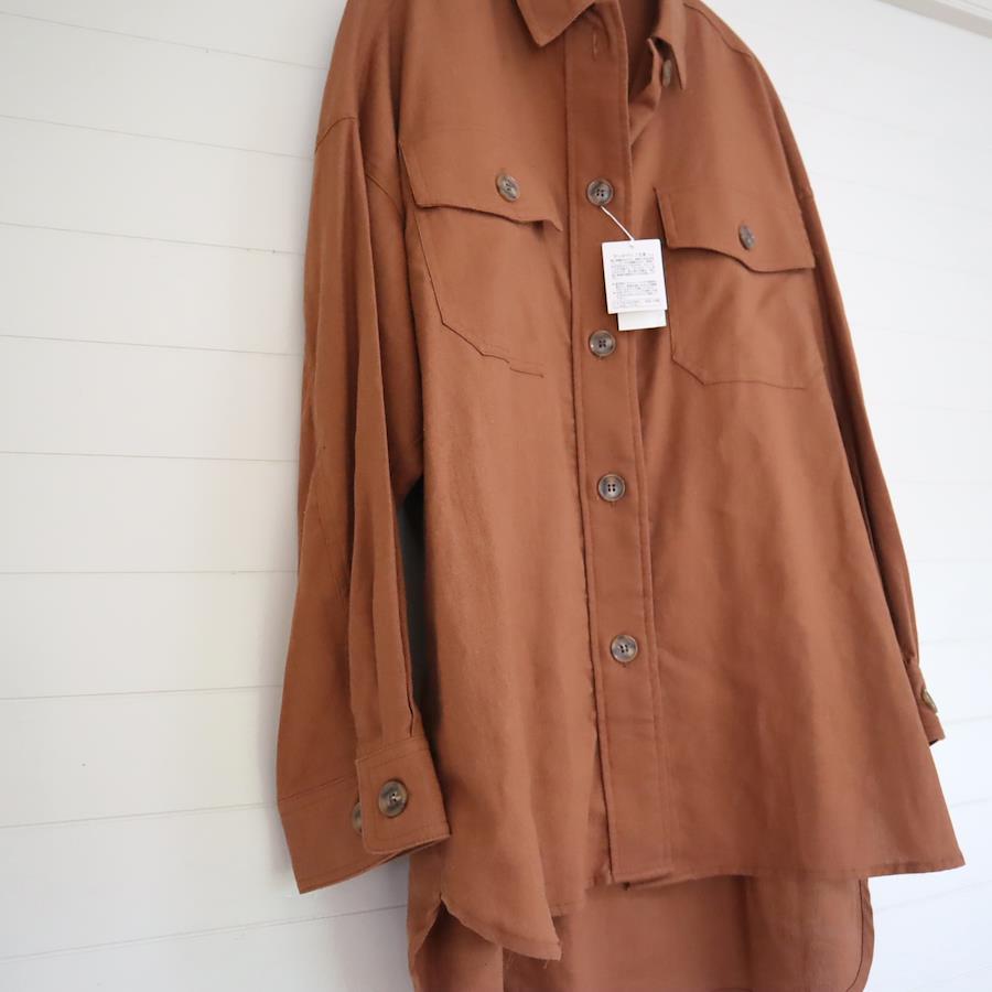 ライトブラウンカラーとゆったりしたシルエットで、春秋の羽織りやカジュアルコーデにぴったり。