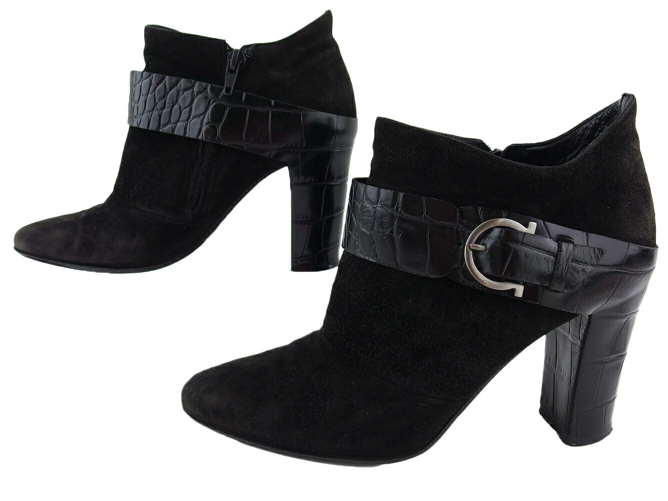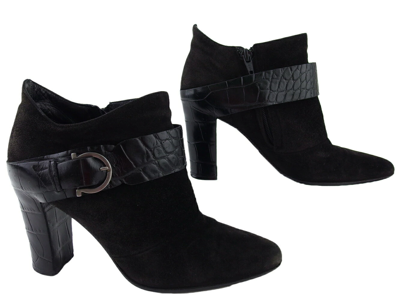 【春のご褒美SALE★21%OFFクーポン】サルヴァトーレフェラガモ Salvatore Ferragamo ブーツ アンクルブーツ ♯5C ガンチーニ ブラック シルバー レディース 中古 ブランド ハイブランド ヴィンテージ