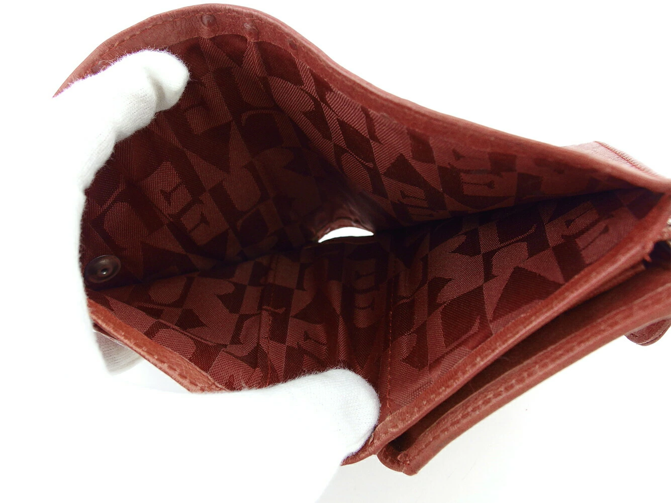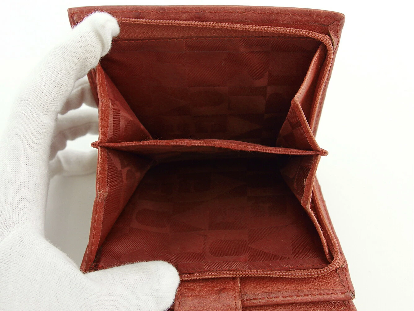 【春のご褒美SALE★21%OFFクーポン】フルラ Furla 二つ折り財布 オーストリッチ調 レッド シルバー レディース 中古 ブランド ハイブランド ヴィンテージ