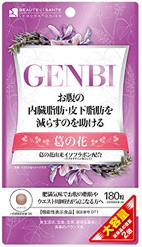 肥満気味でお腹の脂肪・ウエスト周囲が気になる方へ お腹の内臓脂肪・皮下脂肪を減らすのを助ける 本品には、葛の花由来イソフラボン(テクトリゲニン類とし て)が含まれます。 葛の花由来イソフラボン(テクトリゲニン 類として)には、肥満気味な方の、体重やお腹の脂肪 (内 臓脂肪と皮下脂肪)やウエスト周囲径を減らすのを助ける機能があることが報告されています。 肥満気味な方、BMI が高めの方、お腹の脂肪が気になる方、ウエスト周囲径が気になる方に適した食品です。 こんな方におすすめします。 ●肥満気味でBMIが高い ●お腹周りの脂肪が気になる ●体重が増えてお腹も出てる 機能性表示食品 GENBI(届出番号D71) 本品は、事業者の責任において特定の保健の目的が期待できる旨を表示するものとして、消費者庁長官に届出されたものです。ただし、特定の保健用食品と異なり、消費者庁長官による個別審査を受けたものではありません。 機能性関与成分:葛の花由来イソフラボン (テクトリゲニン類として) 22 mg