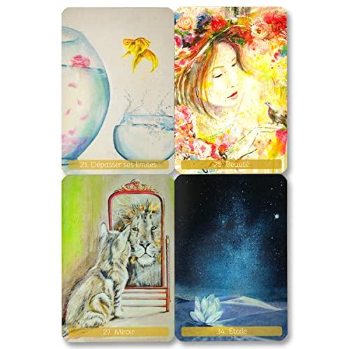 心に語りかけてくるような絵柄の自分を信じる力をくれるオラクルカード 気品あるゴールドエッジ・カード枚数 42枚 ポーチ付き フランス語解説書 (※日本語訳された解説書ではありません。) カードに書かれた単語の日本語訳一覧をおつけしています(A4用紙一枚) メーカー:Courrier du Livre