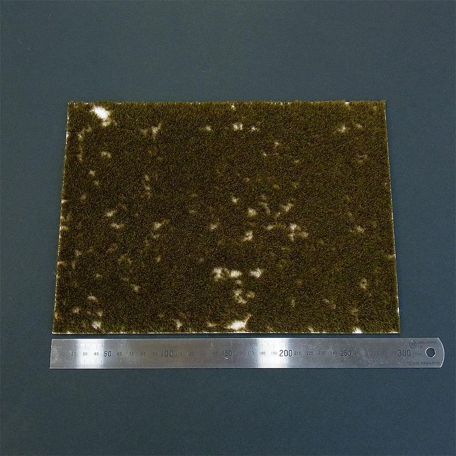 A4サイズの透明で柔軟な薄い膜に、草類を表現する繊維素材が植えられたジオラマ素材です。