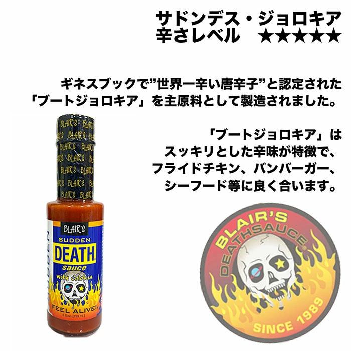 Blair Lazar氏、バーテンダーをしていた19の頃、閉店時間になっても帰ろうとしないパーティーオールナイターズを何としても帰そうと、悪戯心ではじめた駆け引きがDeathSauce開発のきっかけとなったようです。それは激辛ソースでマリネした“WingofDeath” (ChickenWing)を食べさせ、完食できたら残って遊ばせるというものでした。辛いものが好きな人はどんどん辛いものを要求してくる、そう“辛さは人を虜にする”と閃き、試作に試作を重ねBlair’s Death Sauceが完成しました。