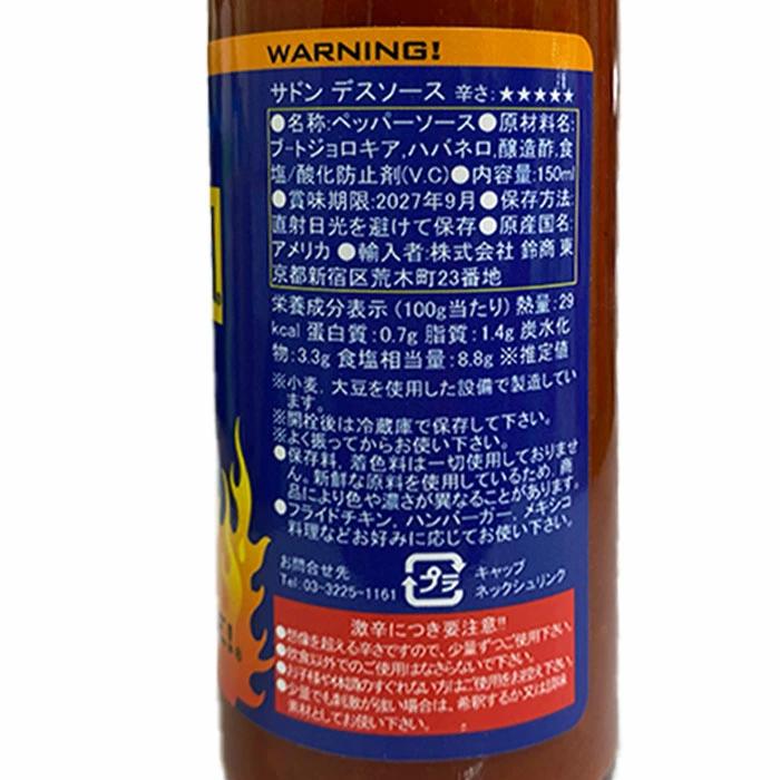 デスソースは、これまでに味わったことのない最高に辛くて美味しいリッチなホットソースです。 「世界一辛い唐辛子」とギネスブックで認定されたブートジョロキアや、レッドサビナ、ハンバネロペッパー等、高品質で新鮮原材料で作られています。