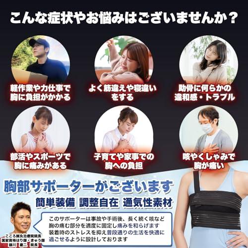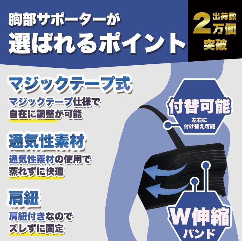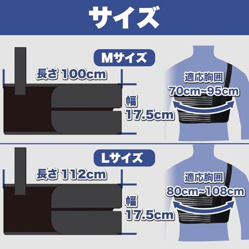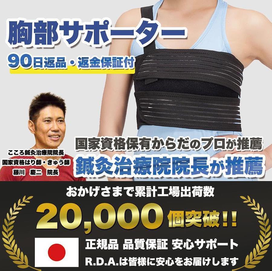 【R.D.A. 胸部コルセット サポーター】 ※本商品は、胸部を保護し、適度に固定するためのサポーターです。 ※肋骨や胸部にトラブルを抱えておられる方、力仕事で胸部への負担が多い方、筋違えや寝違えをする方におすすめです。 ◆R.D.A.胸部サポーターのポイント◆ ①介護予防鍼灸師推薦・安心のサポーターです。 ②マジックテープ式のW伸縮バンド:胸部を上下2枚に分割された伸縮バンドですので、男女問わず体型に合わせて固定することができます。又、マジックテープ式ですので、お好みの強さで調整していただけます ③通気性に優れたメッシュ素材使用で蒸れずに快適にご使用いただけます。 ④ズレ防止の肩ひもストラップ付:マジックテープ式の肩紐ストラップで左右の位置調整も可能です。不要な場合は取り外してご使用いただけます。 SIZE Mサイズ 幅17.5㎝×長さ103㎝(適応胸囲・70~105㎝) Lサイズ 幅17.5㎝×長さ113㎝(適応胸囲・80~115㎝)