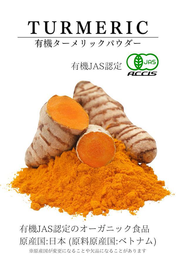 ?【安心の有機JAS認定!】オーガニック栽培されたターメリックを使用しています。無農薬・無化学肥料でオーガニック栽培されているので、スパイスなどに安心して使えます。オーガニックのターメリックを国内工場にてクリーニング・粉砕パウダー工程を行うので、衛生面も安心してご利用頂けるターメリックパウダーです。?【「ウコン」で馴染みのスパイス】ターメリックは「ウコン」でお馴染みのスパイス。カレー粉の色付けの原料にも使われるスパイスです。食欲をそそる、色鮮やかな黄色。どれだけ火を通しても、ターメリックの色味そのままで料理ができます。?【豊富な栄養を安心安全に!】リン、鉄、カルシウム、カリウム、マグネシウムなどのミネラル、食物繊維、ポリフェノールなどの栄養が豊富に含まれているターメリック。特にポリフェノールの一種であるクルクミンは美容や健康にも!?【いろんな料理に使える】手作りカレーでお馴染みのターメリックは、ターメリックライスやターメリックラテなど振りかけるだけで簡単に彩りを添えることができるスパイスです。高価なサフランの代用品としても使えるので、お手軽にお使いいただけるターメリックパウダーです。?【ガラムマサラとの相性抜群!】食材ではお魚やお肉などと相性が良いターメリックパウダー。香辛料ではガラムマサラとの相性が非常に良く、一緒に使用するとターメリックの美しく鮮やかな色合いと、ガラムマサラのスパイシーな香りが相性抜群です!【重要】メーカーによる商品リニューアルに伴いパッケージ(内容量も含む)変更が行われた場合、新パッケージでお届け致します事ご了承願います。