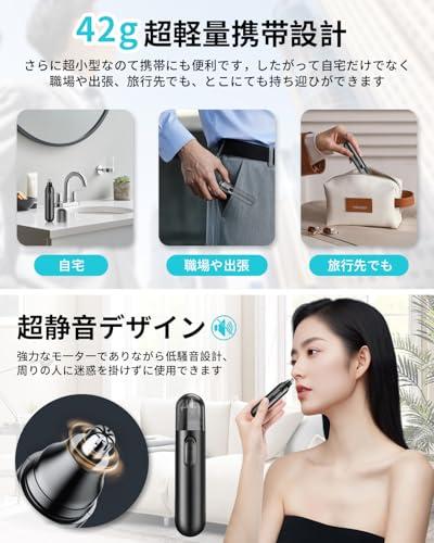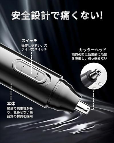 【USB充電式鼻毛カッター】鼻毛カッター メンズは高性能リチウムイオン電池を内蔵しており、付属のType-Cケーブルでかんたんに充電することができます。いつでもどこでもお手軽に充電でき。スマートフォン用のUSB充電器でも充電は可能なので外出先での充電も便利です。 【一台3役の多機能電動鼻毛カッター】鼻毛だけでなく、眉毛トリマー、耳毛もケアできる多機能なエチケットカッターです。デュアルエッジ刃を採用するので、側面からの毛だけではなく、上から入る毛もカットできます。また、人間工学に考えれた立体的な弧線デザインで鼻腔の肌に優しくて安心できます。安全性が高く、無駄毛を素早くカットでき、鼻腔にもびったりとフィットし、奥まできれいにカットできます。 【静音設計&コンパクト仕様】鼻毛カッターは、マッドなボディに操作しやすいスイッチを備え、手になじみ使いやすいものとなってます。サイズは12.6 × 2cmと重さも60gです超小型なので携帯にも便利です。したがって自宅だけでなく、職場や出張、旅行先でも、どこにでも持ち運びができます。また本製品は静音設計なのでいつでも気軽にご使用できます。 【IPX6防水&お手入れが簡単】電動鼻毛剃りは防水できます。鼻毛切りの先端は、外して直接にすすぐことができ、残留物や細菌の繁殖を防ぎ、いつでも清潔に保つことができます。鼻毛カッター 充電式はヘッドを取り外して洗うこともできます。 ユニークな双頭清掃ブラシは、鼻毛カッター usb充電式を簡単にお手入れができながら、鼻毛カッターの清潔を保つことができます。 【安心品質&信頼アフタサービス】弊社はいつまでもよりよい鼻毛かったー メンズを作るために、徹底的な検品検査をおこなっています。しかし、万が一不良品が発生した場合は弊社がいつまでも安心なアフタサービスを提供しております。もしご使用際に何か質的な問題を発生してしまう場合は一年間内に弊社とご連絡してください。24時間に返事いたします。お客様に寄り添ったアフタサービスを提供することは弊社が目指す目標でございます。 (#lf)(#lf)(#lf)商品購入前に、ストア紹介ページをご確認ください。