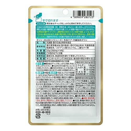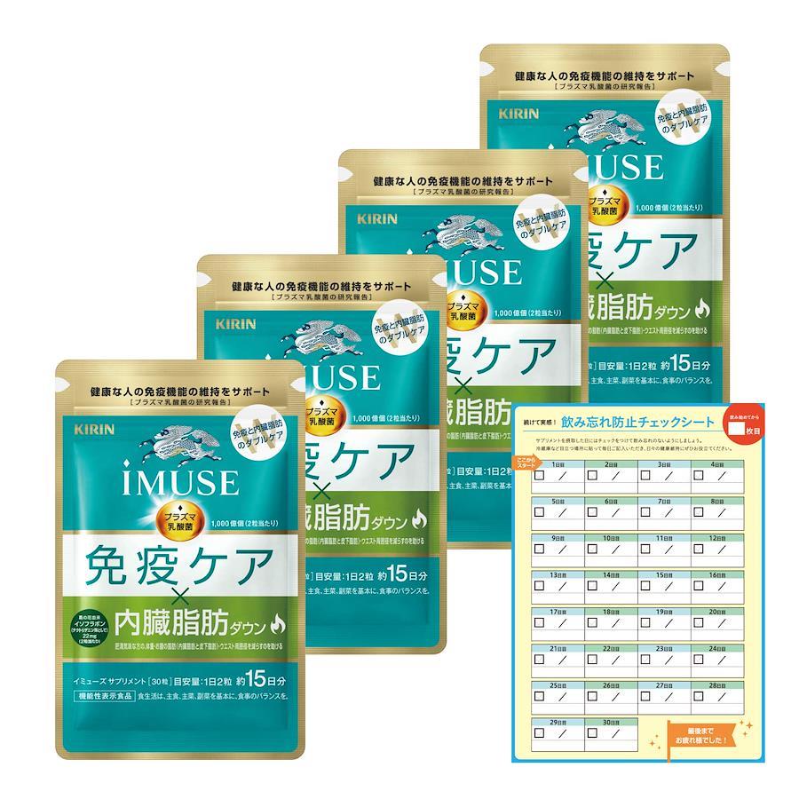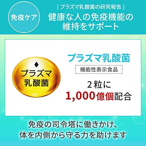 日本初!※免疫と内臓脂肪のWケアサプリメント(※日本で初めての免疫と内臓脂肪の二つの機能を持つ機能性表示食品として届出公表されたサプリメント) 年齢とともに気になり始めた 「ぽっこりおなか」、おうち時間が増え、体を動かす機会も減ったためおなか周りの脂肪は増える一方で健康面も不安ですよね。年齢とともに太りやすくなる 原因は「基礎代謝の低下」でした。歳を重ねると基礎代謝が低下し、消費するエネルギーは減っていきます。そのため、若い頃と同じ量を食べると、消費しきれなかったカロリーが脂肪として蓄えられていきます。さらに!実は内臓脂肪が気になる人こそ免疫ケアが大切。内臓脂肪は健康に対して、さまざまな影響を及ぼすことはよく知られていますが、最近の研究では、内臓脂肪が免疫に対して与える影響についても注目を集めています。 【こんな方へおすすめ】・免疫を維持し健康でいたい方、・ぽっこりお腹が気になっている方、手軽に健康対策を始めたい方 【機能性関与成分】プラズマ乳酸菌(L. lactis strain Plasma)1,000億個、葛の花由来イソフラボン(テクトリゲニン類として)22mg、【届出表示】本品には、プラズマ乳酸菌(L. lactis strain Plasma)が含まれます。プラズマ乳酸菌はpDC(プラズマサイトイド樹状細胞)に働きかけ、健康な人の免疫機能の維持に役立つことが報告されています。 本品には、葛の花由来イソフラボン(テクトリゲニン類として)が含まれます。葛の花由来イソフラボン(テクトリゲニン類として)には、肥満気味な方の、体重やお腹の脂肪(内臓脂肪と皮下脂肪)やウエスト周囲径を減らすのを助ける機能があることが報告されています。 【内容量】250mg×30粒(約15日分目安)、【お召し上がり方】1日2粒を目安に、水などと一緒にお召し上がりください。
