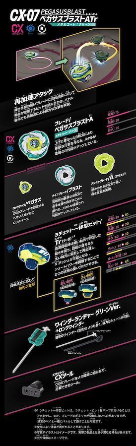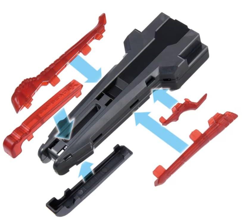 【CX-07】ブレードが3パーツに分解可能になり、性能をカスタマイズできる カスタムラインのベイ。 ロングワインダーランチャー同梱のスターター。 メタルが塗装され上下に重なった3枚刃により重厚な打撃を与える ブレードと、回転速度に応じて軸先が変形するラチェット一体型 ビットを組み合わせることでバトル後半でも再加速による強力な 攻撃を実現したベイ。【BX-41】ランチャー(別売り)に装着するツール。握りやすい形状で、シュートの安定性を向上させる。 ラバー製のパネルをカスタマイズすることで握りやすさを調節可能にしたグリップのガンメタVer。 【BX-41】ランチャーグリップ(1)、ラバーパネル(4)、グリップパネル(1) 4904810958482W90×H180×D40mm