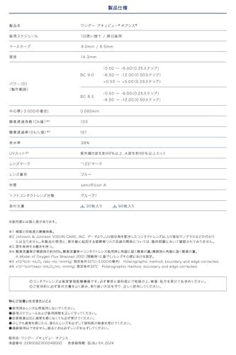 コンタクトレンズは高度管理医療機器です。必ず事前に眼科医にご相談の上、検査・処方を受けてお求めください。 ご使用前に必ず添付文書をよく読み、取り扱い方法を守り、正しく使用してください。 販売名:ワンデー アキュビュー オアシス / 承認番号:22800BZX00049000 / 登録商標 原産国:アイルランド共和国 / アメリカ合衆国 DIA(直径):14.3mm 、BC(ベースカーブ):9.0mm、PWR:-0.50 ~ -6.00(0.25ステップ)、-6.50 ~ -12.00(0.50ステップ)、+0.50 ~ +5.00(0.25ステップ)、BC(ベースカーブ):8.5mm、PWR:-0.50 ~ -6.00(0.25ステップ)、-6.50 ~ -12.00(0.50ステップ) 1日使い捨てコンタクトレンズ / 1箱30枚入り / 片眼30日分/酸素透過率121DK/L / 含水率38% ワンデーアキュビューオアシスは、目にとって過酷な環境においても、1日の終わりまで乾燥感のない快適なつけ心地※と鮮明な見え方が得られ、疲れ知らずな目を追求したデジタル時代のハイパフォーマンス・コンタクトレンズ。独自のレンズ設計によりレンズがまるで涙の一部のように涙の層を安定。乾燥感や疲れ目の原因となる、コンタクトレンズの乾燥、かすみやぼやけ、まばたきの時のまぶたとレンズの摩擦を軽減します。 ※ 装用感、見え方には個人差があります。