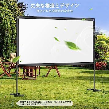 【高密度・高品質スクリーン素材】この屋外用プロジェクタースクリーンは、天然ポリエステル生地で作られています。高密度で厚みのある生地により、光の透過を防いで見やすさをアップします。投影がより鮮明で明るくなり、お気に入りの映画をいつでも美しく楽しめます。そして、長時間使っても非黄変で、耐久性が高く汚れに強いので手洗いや洗濯機に対応でき、メンテナンスが非常に簡単です。*本製品は正面及びリア投影両方も対応できるプロジェクタースクリーンです。