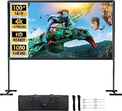 通常1-5営業日で発送:【2023新登場&屋内屋外兼用】YOWHICK プロジェクタースクリーン 100インチ 16:9 スタンド付き 4K対応 自立式スクリーン projector screen 壁掛け 持ち運び 折りたたみ式 視野角160° 防しわ加工 お手入れ簡単 ビジネス/会議/教室/映画適用 父の日ギフト