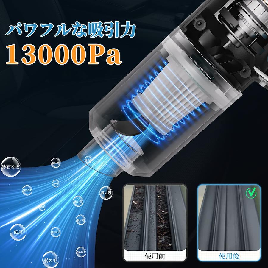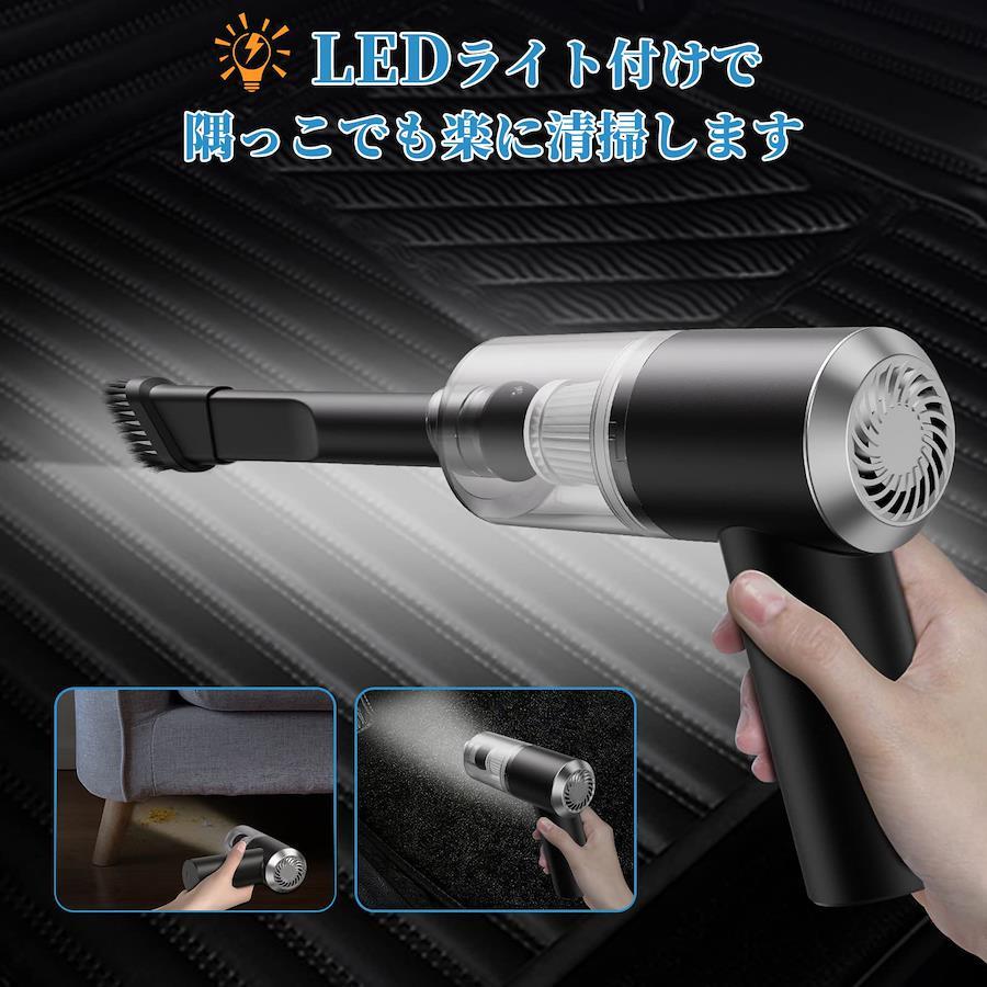 ハンディクリーナー 車用掃除機 13000PA 強力吸引力 コードレス 車カークリーナー パワフル 長時間稼働 USB 充電式 ミニ掃除機 LEDライト付き 0.4kg ゴミ捨て簡単 軽量/業務用/キーボード掃除/車内清掃/家具/ペット毛掃除/家庭用 ハンディ掃除機
