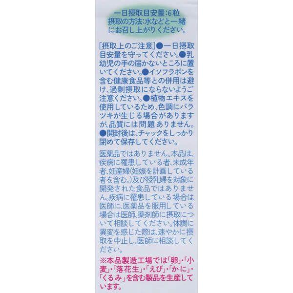 [機能性表示]本品には大豆イソフラボン、ヒアルロン酸Naが含まれます。大豆イソフラボンには健常な中高年女性の骨の成分を維持するのに役立つ機能があることが報告されています。ヒアルロン酸Naには、肌の水分を保持し、乾燥を緩和する機能が報告されています。