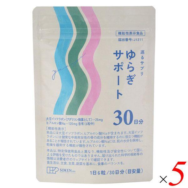 創健社巡るサプリゆらぎサポートは、大豆イソフラボンとヒアルロン酸Naを配合した機能性表示食品です。健常な中高年女性の骨の成分を維持するのに役立つ機能、肌の水分を保持し乾燥を緩和する機能が報告されています。